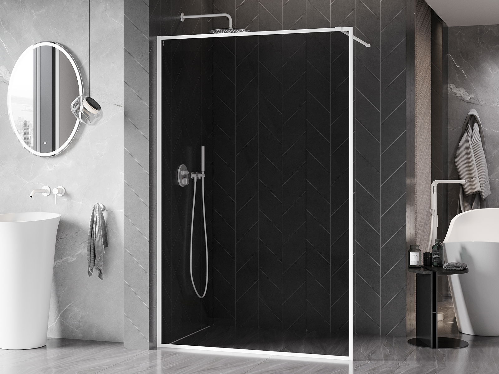 Mexen Kioto-F paroi de douche Walk-in avec cadre 90 x 202 cm, graphite 8 mm, blanc - 800-090-104-20-40
