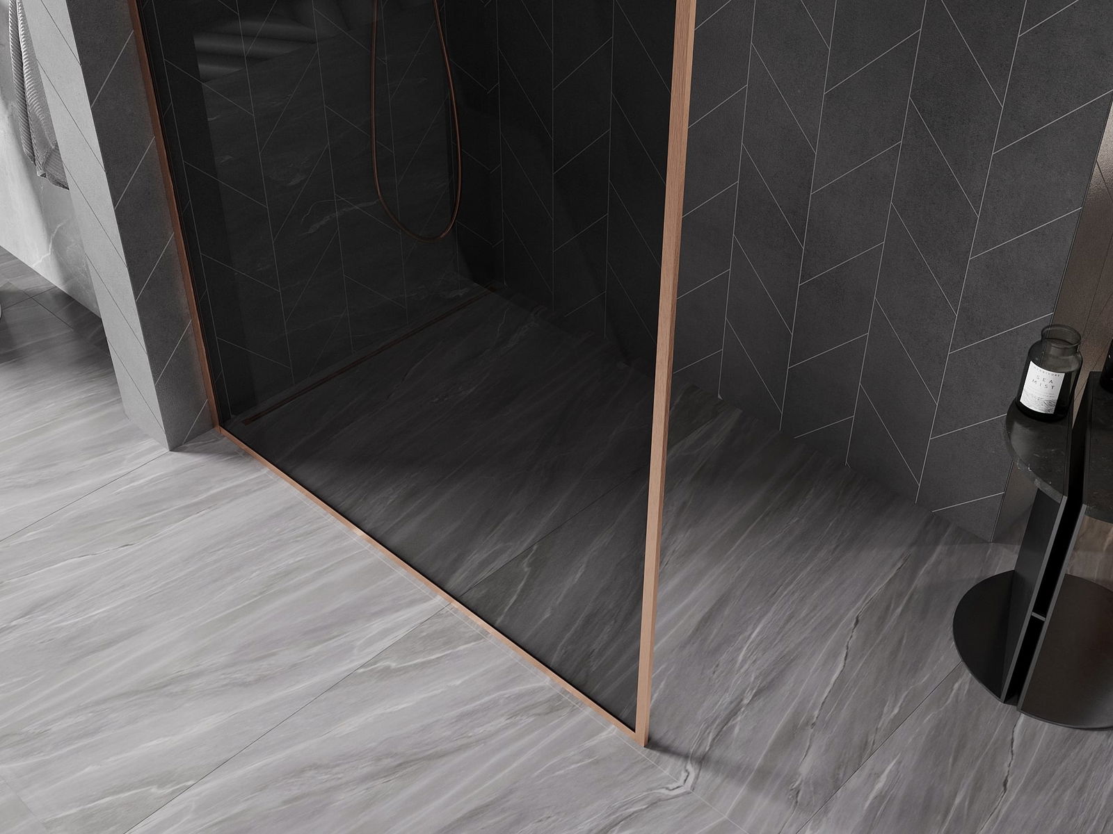 Mexen Kioto-F paroi de douche Walk-in avec cadre 140 x 202 cm, graphite 8 mm, cuivre brossé - 800-140-104-65-40