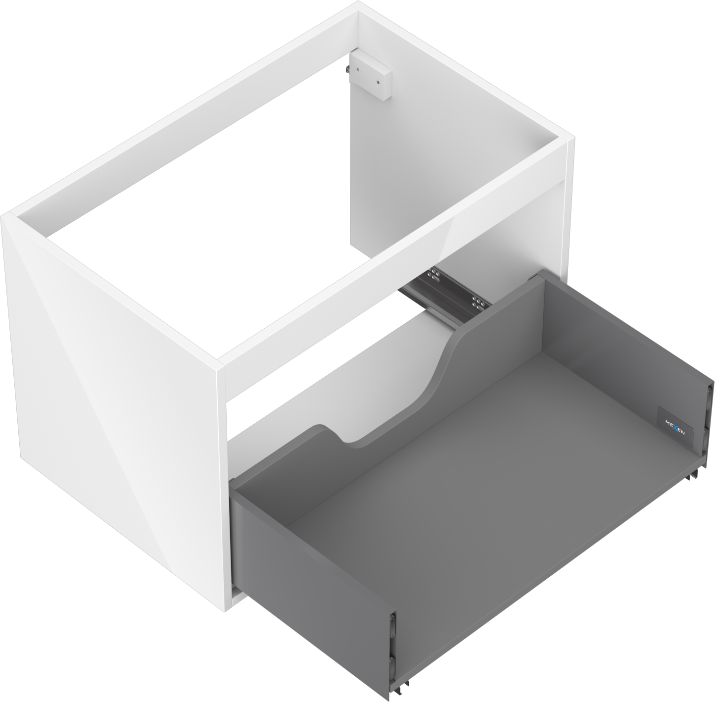 La découpe dans le tiroir est conçue de manière à accueillir le siphon, qui est nécessaire dans les installations de lavabo. Ainsi, le meuble peut être installé de manière pleinement fonctionnelle, sans devoir renoncer à l'espace du tiroir au profit de l'installation.