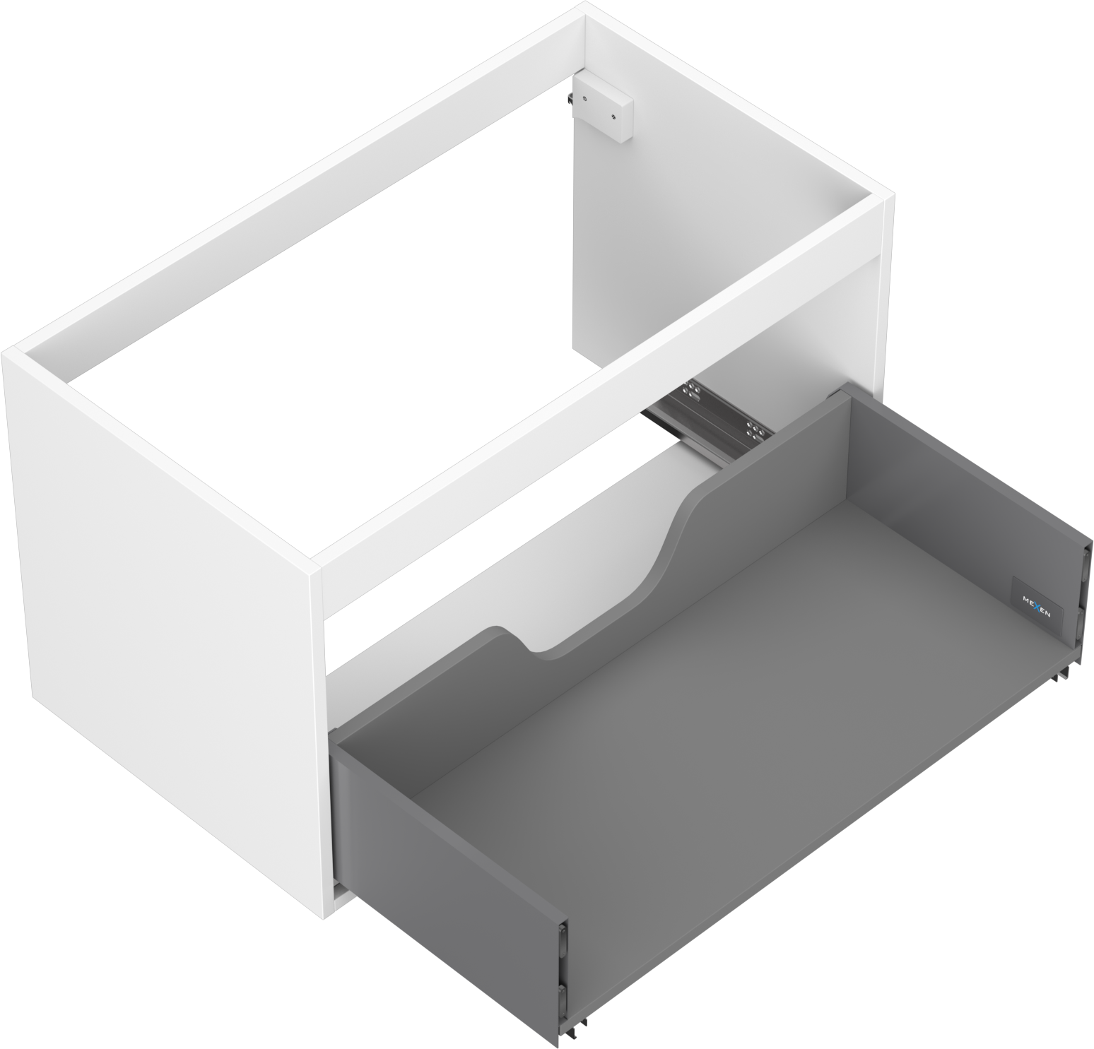 La découpe dans le tiroir est conçue de manière à accueillir le siphon, qui est nécessaire dans les installations de lavabo. Ainsi, le meuble peut être installé de manière pleinement fonctionnelle, sans devoir renoncer à l'espace du tiroir au profit de l'installation.