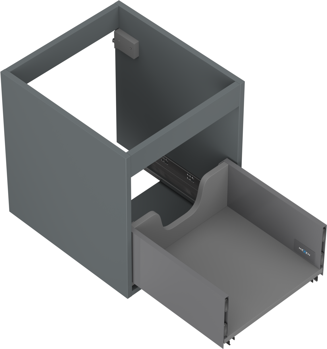 La découpe dans le tiroir est conçue de manière à accueillir le siphon, qui est nécessaire dans les installations de lavabo. Ainsi, le meuble peut être installé de manière pleinement fonctionnelle, sans devoir renoncer à l'espace du tiroir au profit de l'installation.