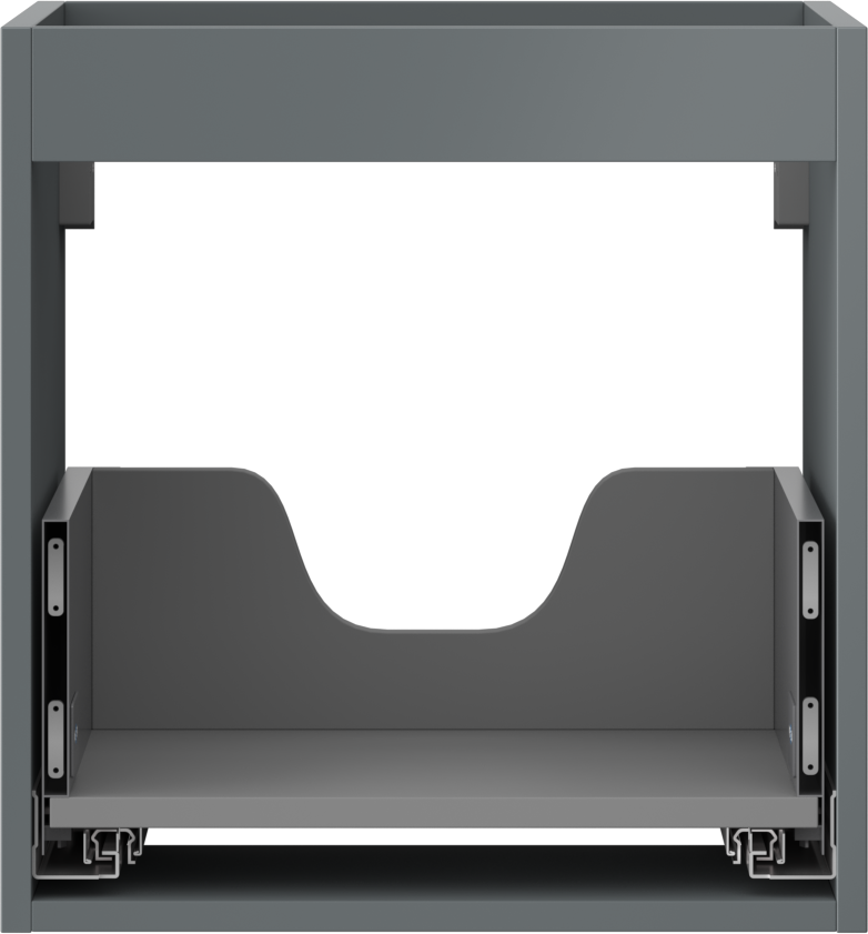 La découpe dans le tiroir est conçue de manière à accueillir le siphon, qui est nécessaire dans les installations de lavabo. Ainsi, le meuble peut être installé de manière pleinement fonctionnelle, sans devoir renoncer à l'espace du tiroir au profit de l'installation.