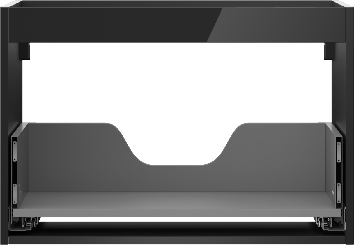 La découpe dans le tiroir est conçue de manière à accueillir le siphon, qui est nécessaire dans les installations de lavabo. Ainsi, le meuble peut être installé de manière pleinement fonctionnelle, sans devoir renoncer à l'espace du tiroir au profit de l'installation.