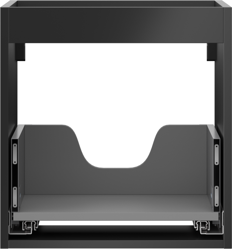La découpe dans le tiroir est conçue de manière à accueillir le siphon, qui est nécessaire dans les installations de lavabo. Ainsi, le meuble peut être installé de manière pleinement fonctionnelle, sans devoir renoncer à l'espace du tiroir au profit de l'installation.