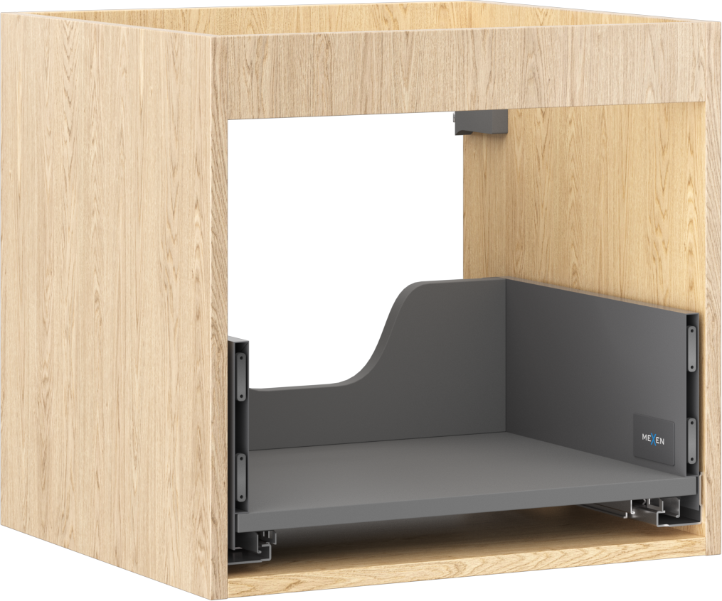 Un tiroir à sortie complète est un type de tiroir équipé d'un mécanisme permettant son extraction totale du corps du meuble. Ce mécanisme facilite l'accès au contenu du tiroir, car il n'est pas nécessaire d'atteindre les bords arrière.