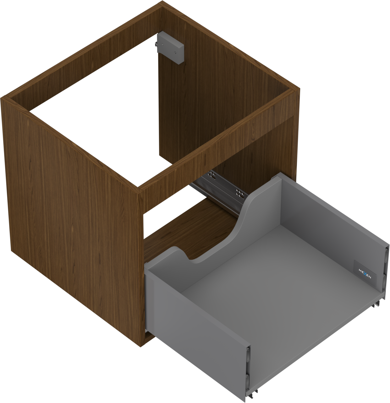 La découpe dans le tiroir est conçue de manière à accueillir le siphon, qui est nécessaire dans les installations de lavabo. Ainsi, le meuble peut être installé de manière pleinement fonctionnelle, sans devoir renoncer à l'espace du tiroir au profit de l'installation.