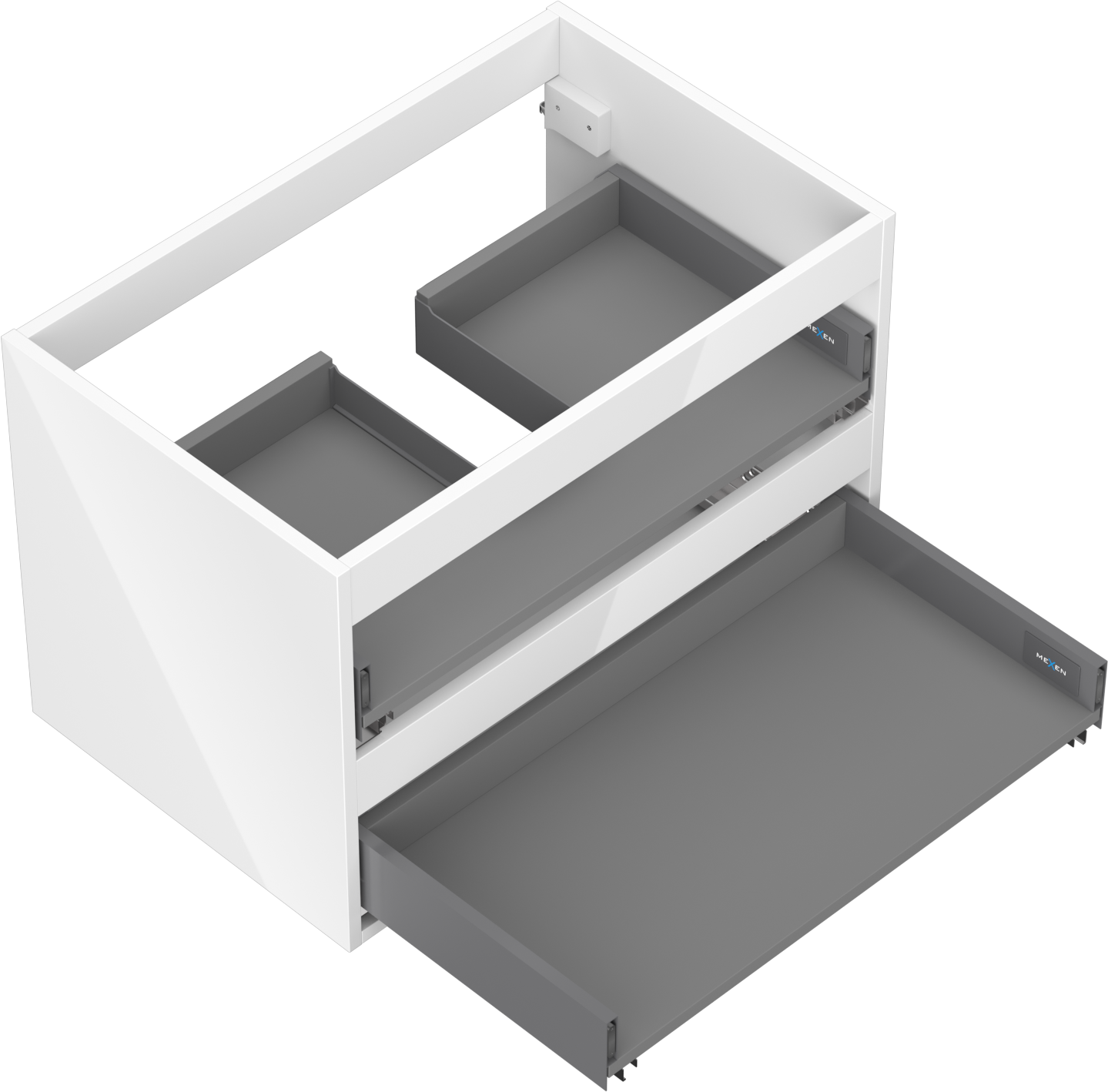 Un tiroir à sortie complète est un type de tiroir équipé d'un mécanisme permettant son extraction totale du corps du meuble. Ce mécanisme facilite l'accès au contenu du tiroir, car il n'est pas nécessaire d'atteindre les bords arrière.