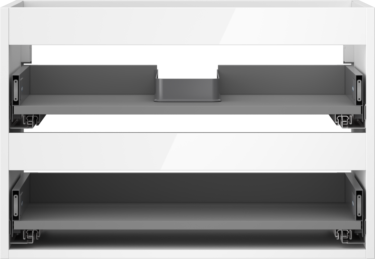 La découpe dans le tiroir est conçue de manière à accueillir le siphon, qui est nécessaire dans les installations de lavabo. Ainsi, le meuble peut être installé de manière pleinement fonctionnelle, sans devoir renoncer à l'espace du tiroir au profit de l'installation.