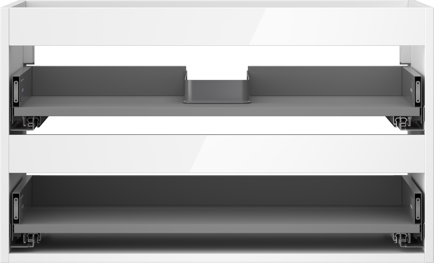 La découpe dans le tiroir est conçue de manière à accueillir le siphon, qui est nécessaire dans les installations de lavabo. Ainsi, le meuble peut être installé de manière pleinement fonctionnelle, sans devoir renoncer à l'espace du tiroir au profit de l'installation.