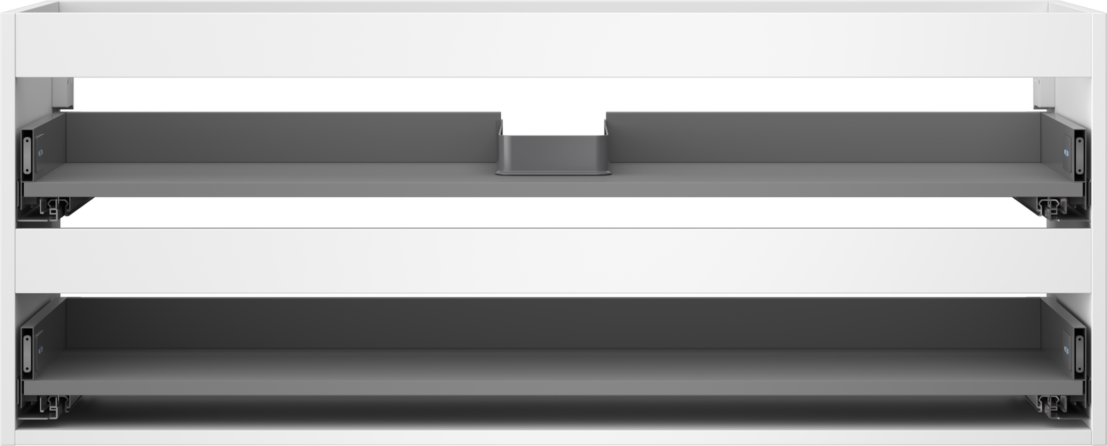 La découpe dans le tiroir est conçue de manière à accueillir le siphon, qui est nécessaire dans les installations de lavabo. Ainsi, le meuble peut être installé de manière pleinement fonctionnelle, sans devoir renoncer à l'espace du tiroir au profit de l'installation.
