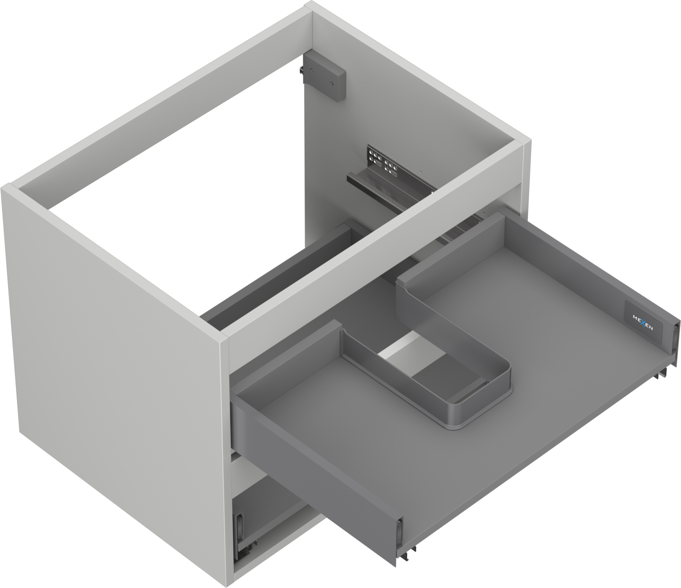 Un tiroir à sortie complète est un type de tiroir équipé d'un mécanisme permettant son extraction totale du corps du meuble. Ce mécanisme facilite l'accès au contenu du tiroir, car il n'est pas nécessaire d'atteindre les bords arrière.