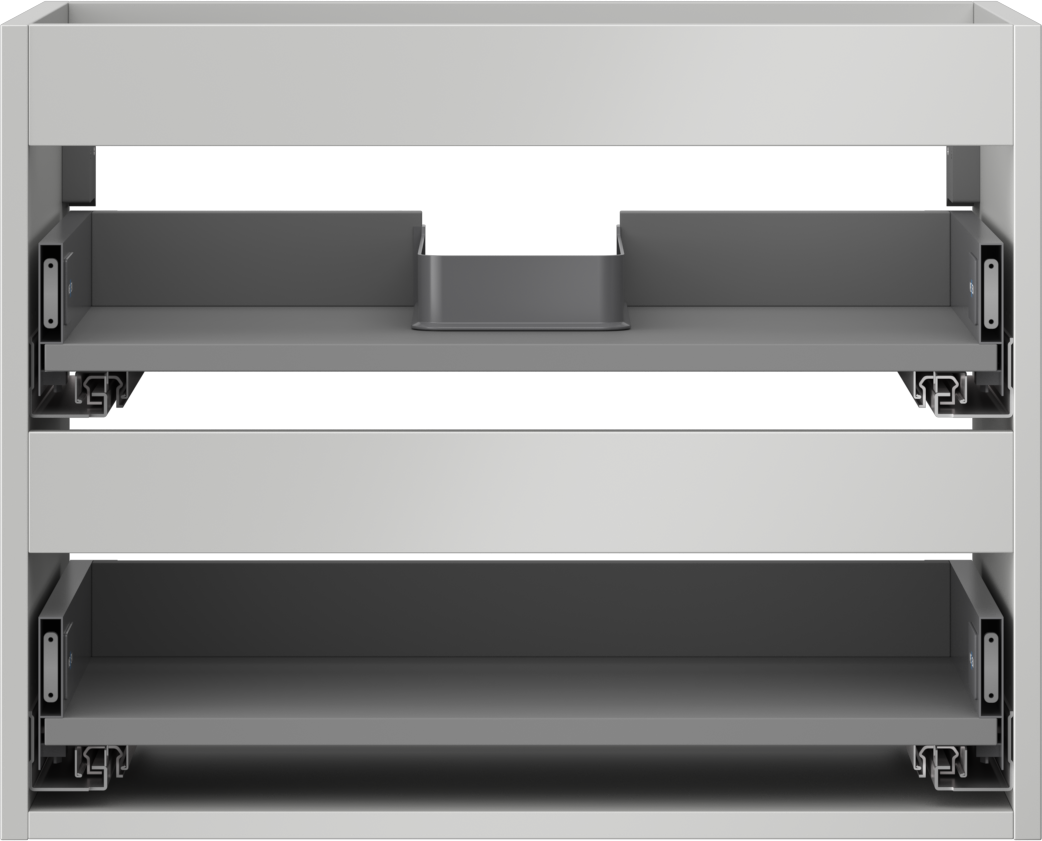 La découpe dans le tiroir est conçue de manière à accueillir le siphon, qui est nécessaire dans les installations de lavabo. Ainsi, le meuble peut être installé de manière pleinement fonctionnelle, sans devoir renoncer à l'espace du tiroir au profit de l'installation.