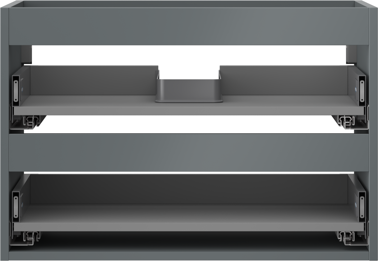La découpe dans le tiroir est conçue de manière à accueillir le siphon, qui est nécessaire dans les installations de lavabo. Ainsi, le meuble peut être installé de manière pleinement fonctionnelle, sans devoir renoncer à l'espace du tiroir au profit de l'installation.