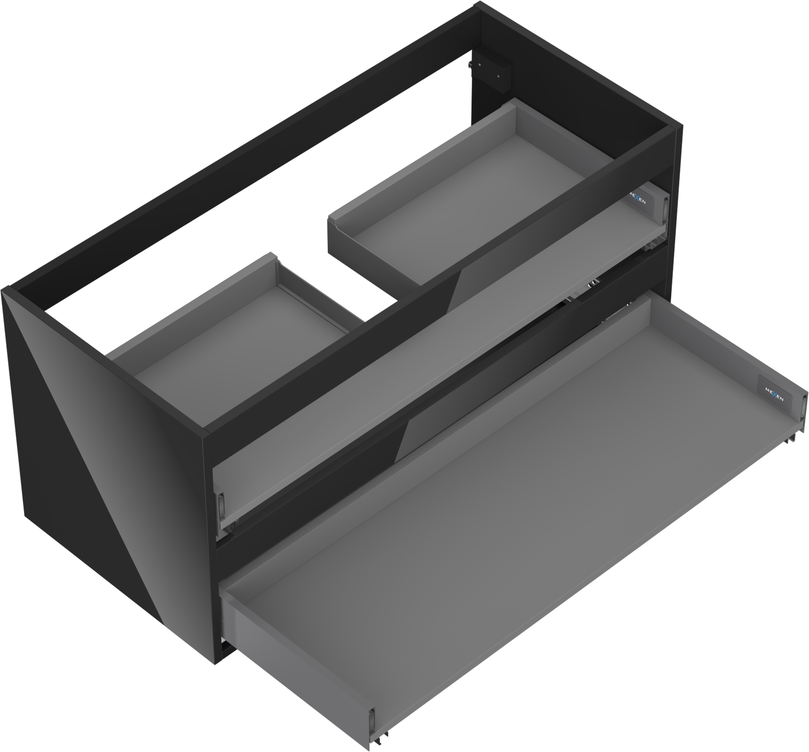 Un tiroir à sortie complète est un type de tiroir équipé d'un mécanisme permettant son extraction totale du corps du meuble. Ce mécanisme facilite l'accès au contenu du tiroir, car il n'est pas nécessaire d'atteindre les bords arrière.
