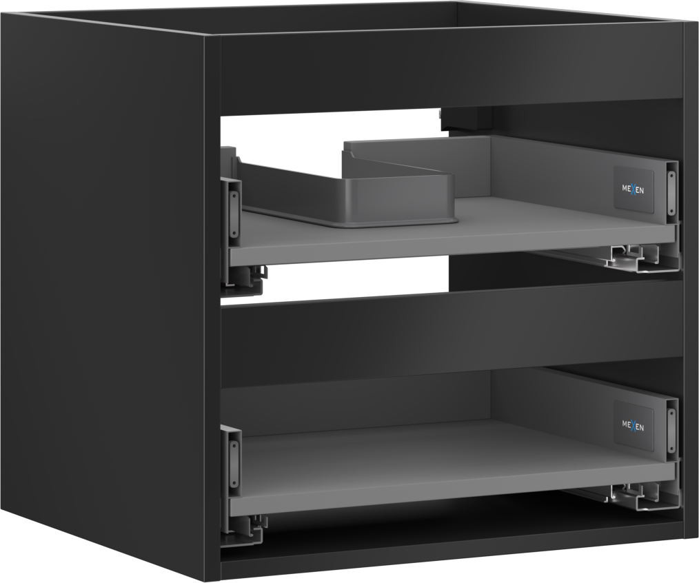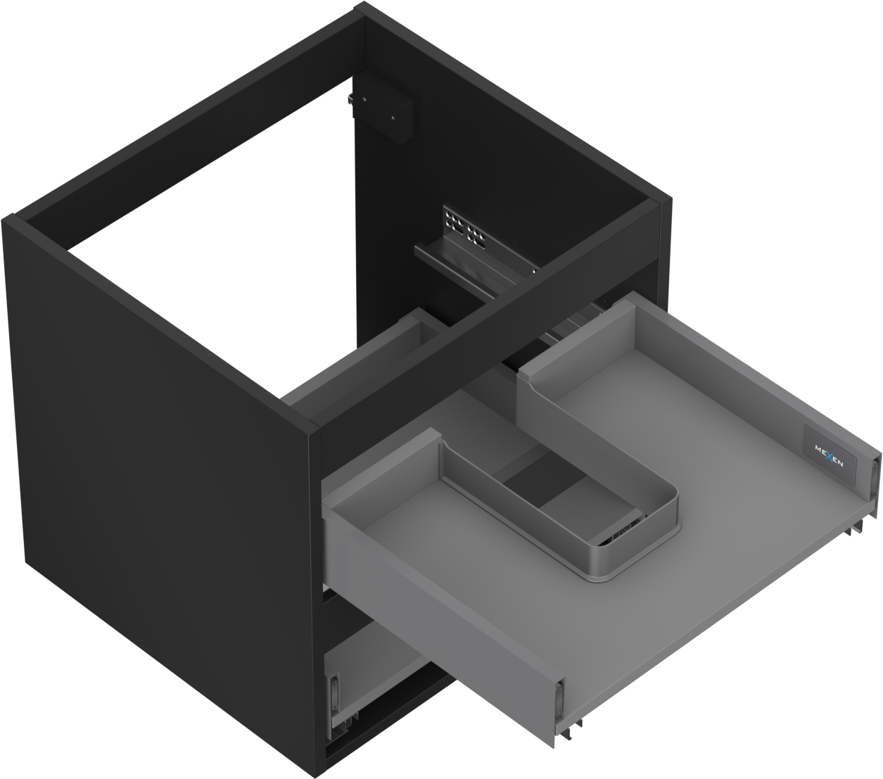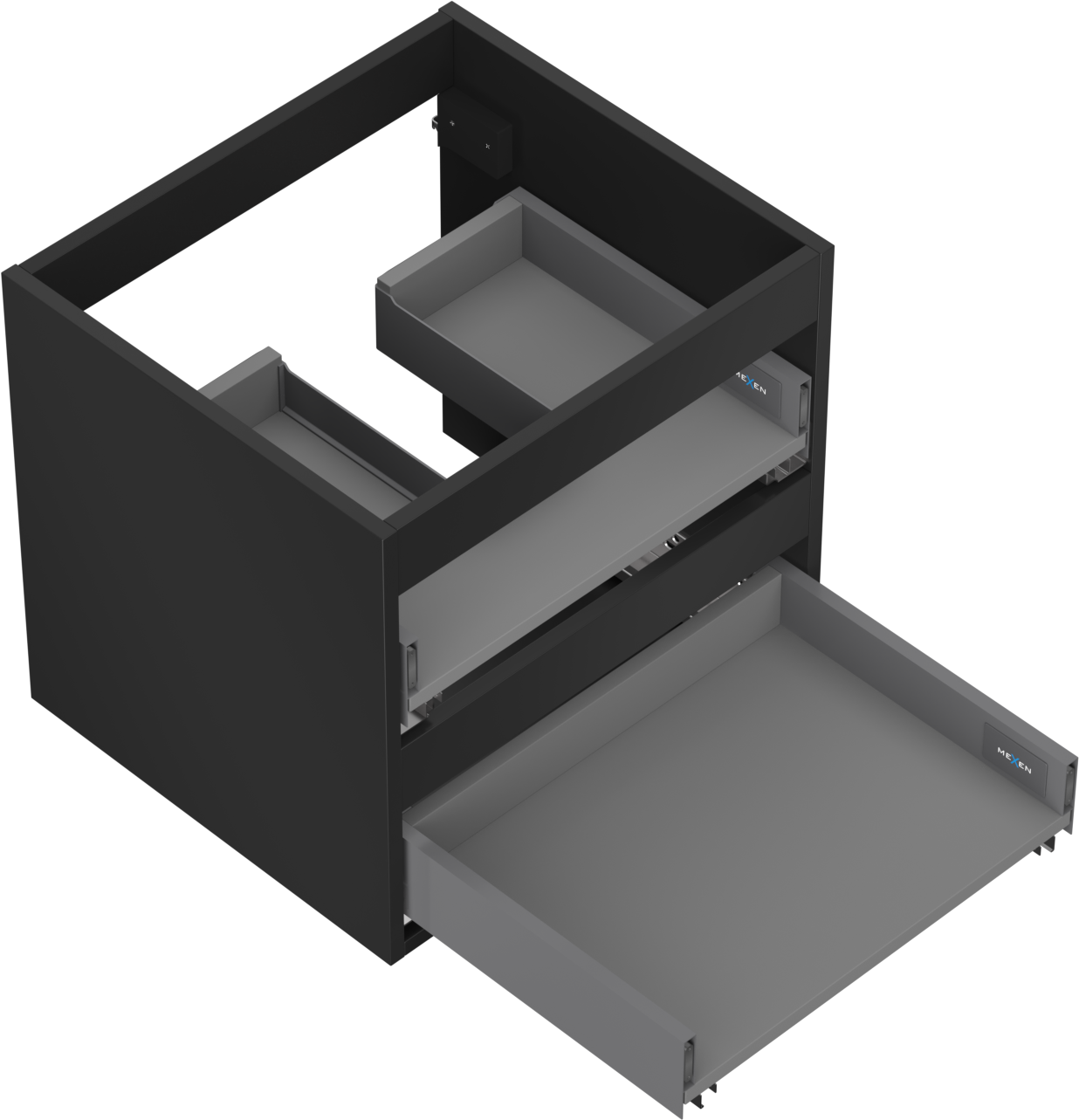 Un tiroir à sortie complète est un type de tiroir équipé d'un mécanisme permettant son extraction totale du corps du meuble. Ce mécanisme facilite l'accès au contenu du tiroir, car il n'est pas nécessaire d'atteindre les bords arrière.