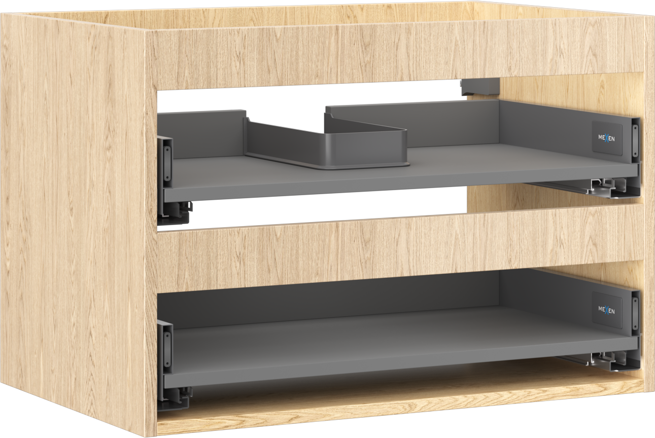 Un tiroir à sortie complète est un type de tiroir équipé d'un mécanisme permettant son extraction totale du corps du meuble. Ce mécanisme facilite l'accès au contenu du tiroir, car il n'est pas nécessaire d'atteindre les bords arrière.