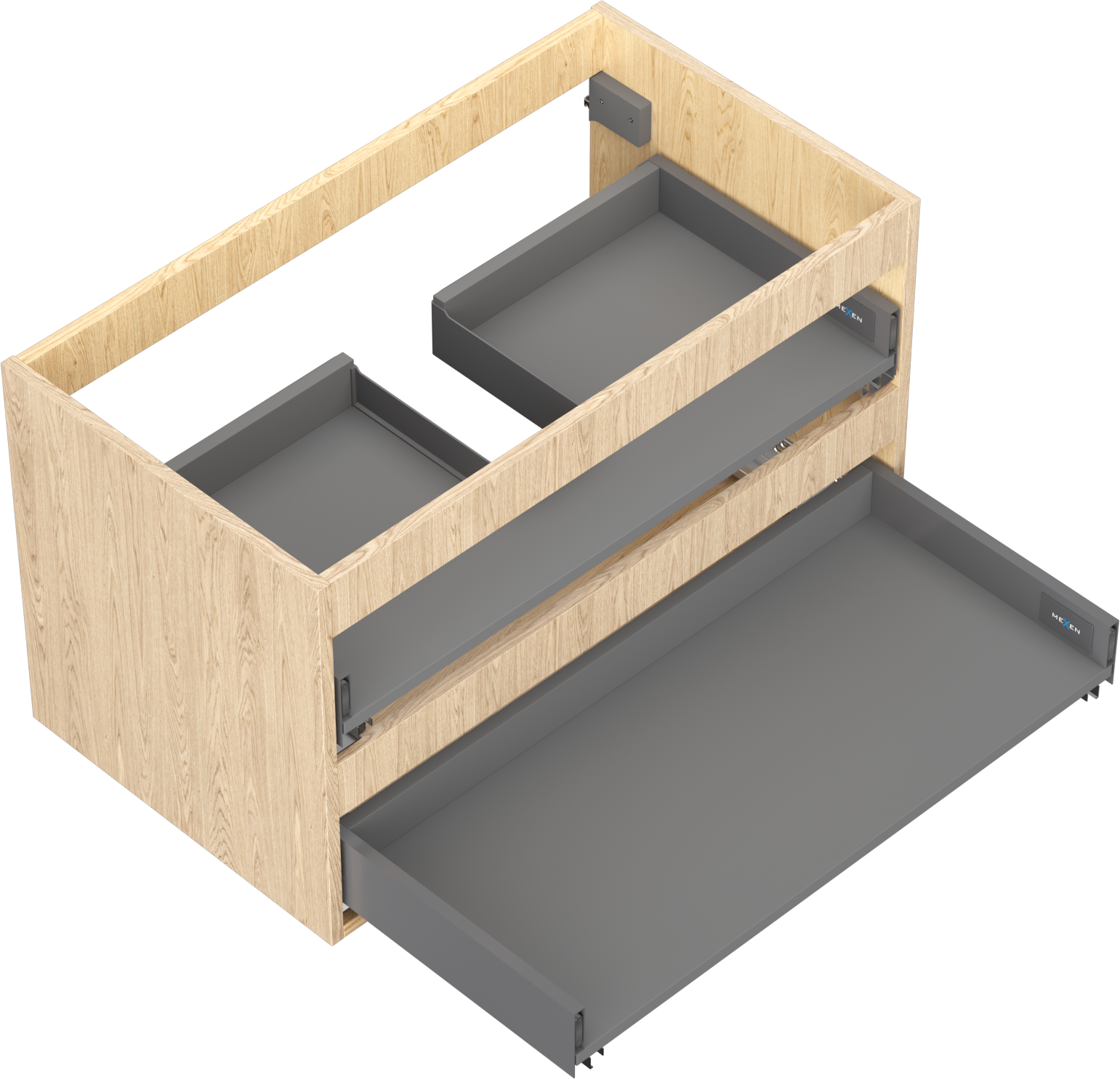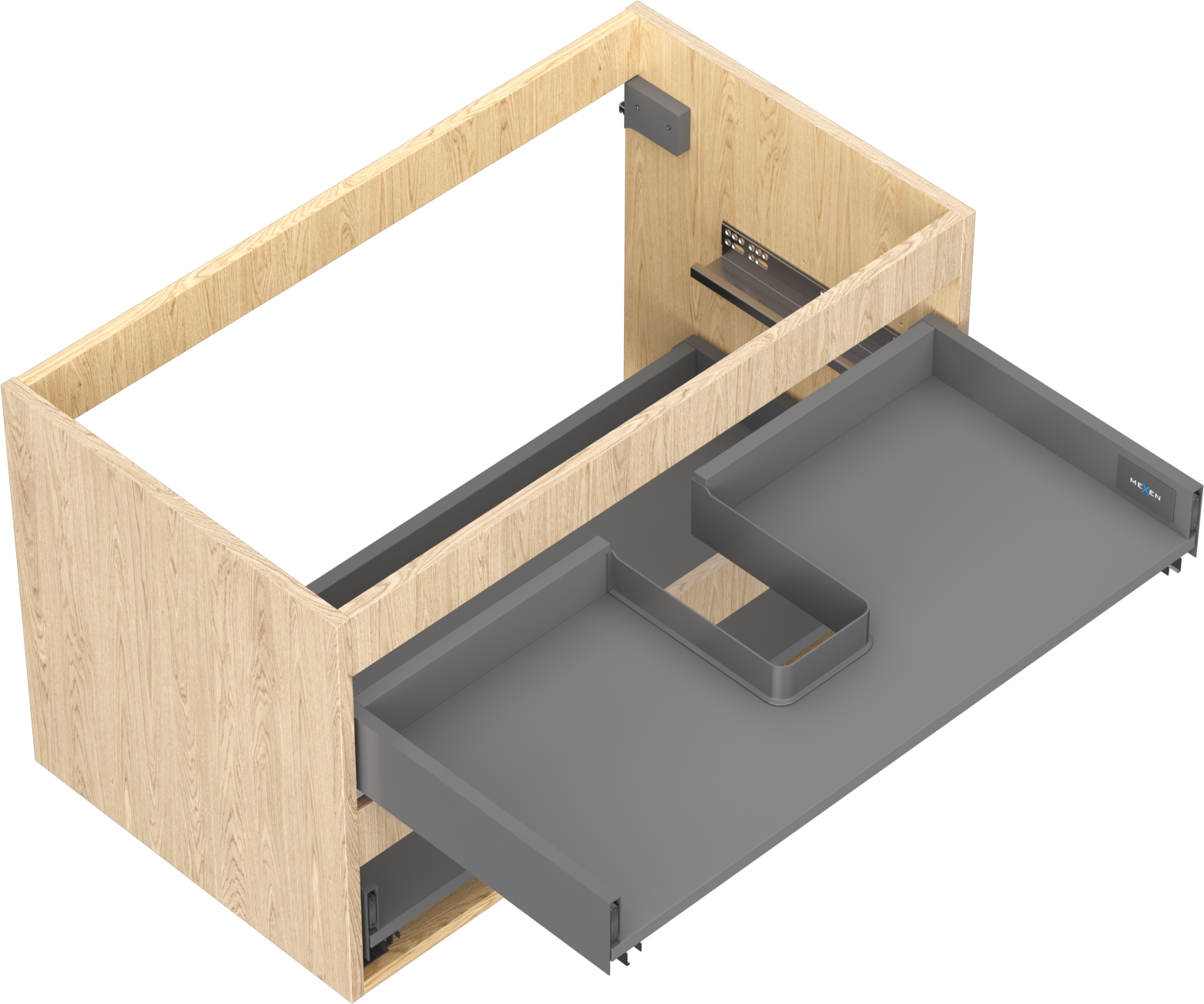 Un tiroir à sortie complète est un type de tiroir équipé d'un mécanisme permettant son extraction totale du corps du meuble. Ce mécanisme facilite l'accès au contenu du tiroir, car il n'est pas nécessaire d'atteindre les bords arrière.