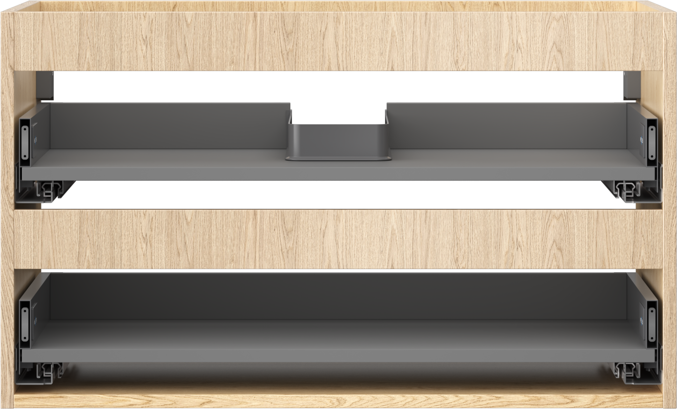 La découpe dans le tiroir est conçue de manière à accueillir le siphon, qui est nécessaire dans les installations de lavabo. Ainsi, le meuble peut être installé de manière pleinement fonctionnelle, sans devoir renoncer à l'espace du tiroir au profit de l'installation.