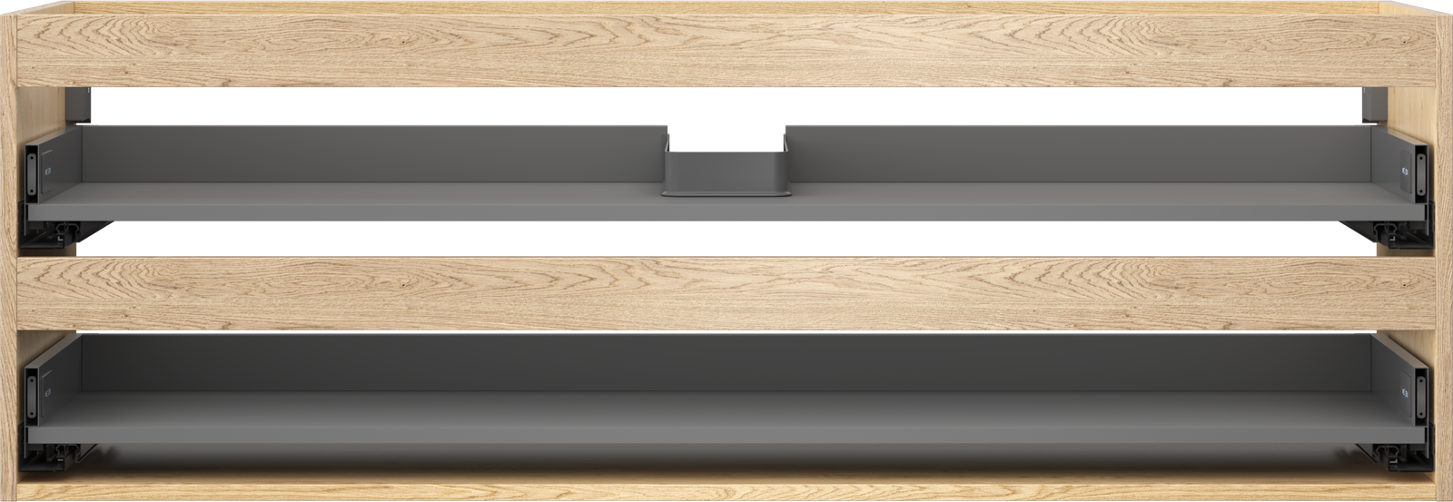 La découpe dans le tiroir est conçue de manière à accueillir le siphon, qui est nécessaire dans les installations de lavabo. Ainsi, le meuble peut être installé de manière pleinement fonctionnelle, sans devoir renoncer à l'espace du tiroir au profit de l'installation.