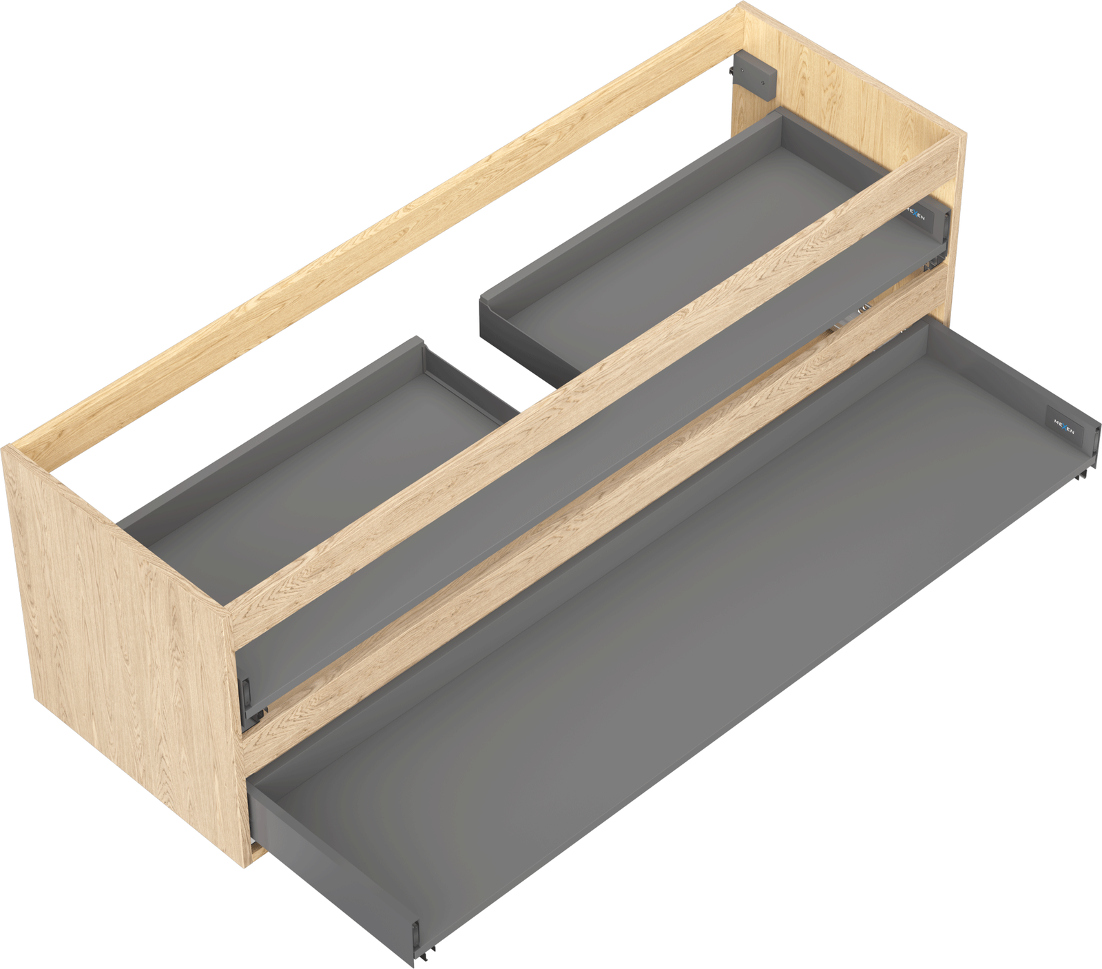 Un tiroir à sortie complète est un type de tiroir équipé d'un mécanisme permettant son extraction totale du corps du meuble. Ce mécanisme facilite l'accès au contenu du tiroir, car il n'est pas nécessaire d'atteindre les bords arrière.