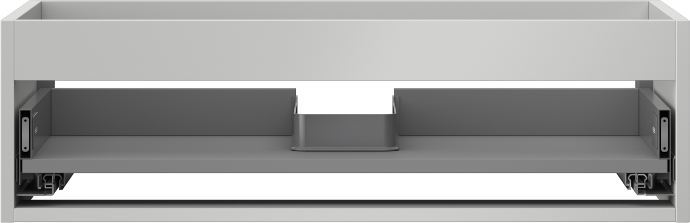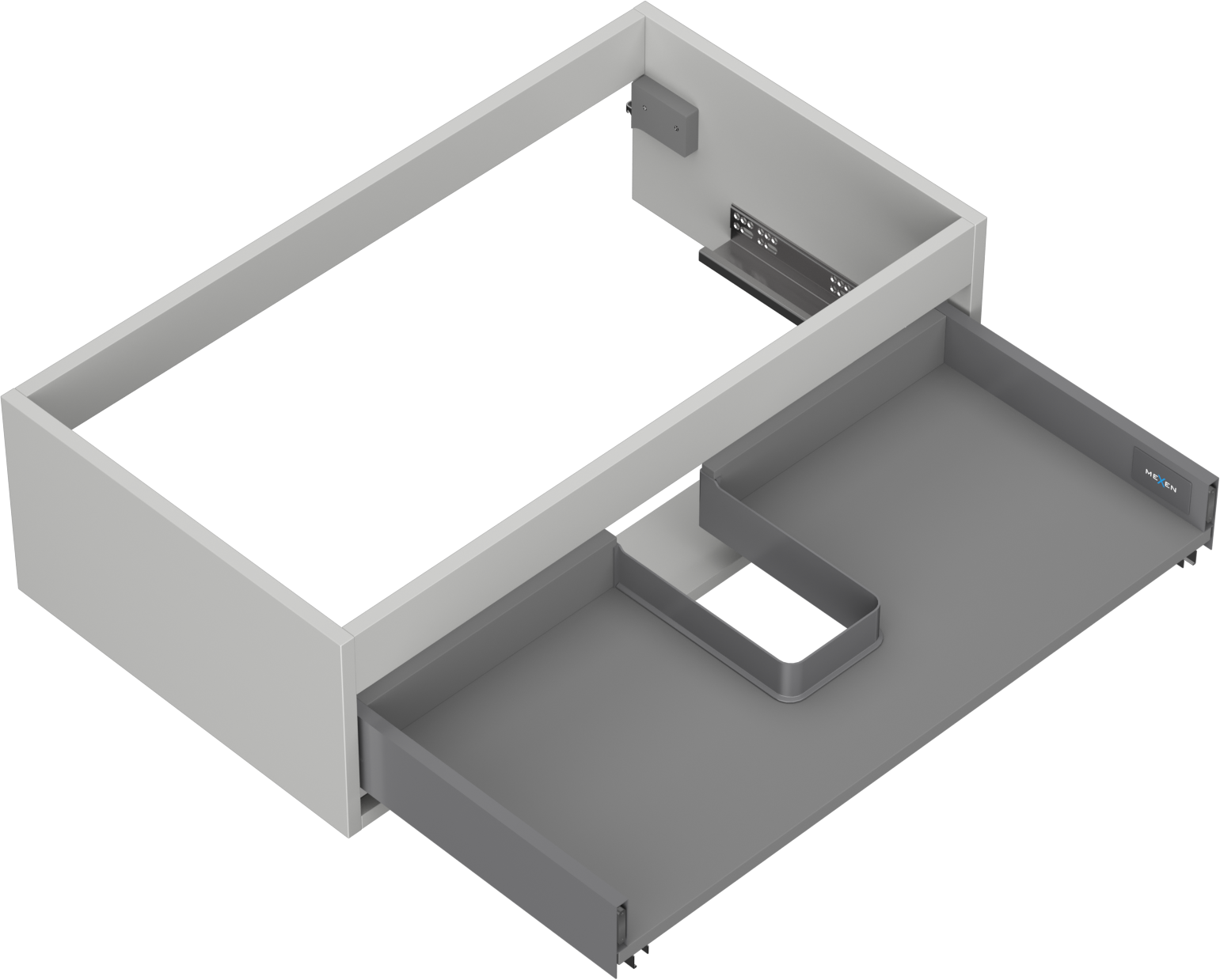 La découpe dans le tiroir est conçue de manière à accueillir le siphon, qui est nécessaire dans les installations de lavabo. Ainsi, le meuble peut être installé de manière pleinement fonctionnelle, sans devoir renoncer à l'espace du tiroir au profit de l'installation.