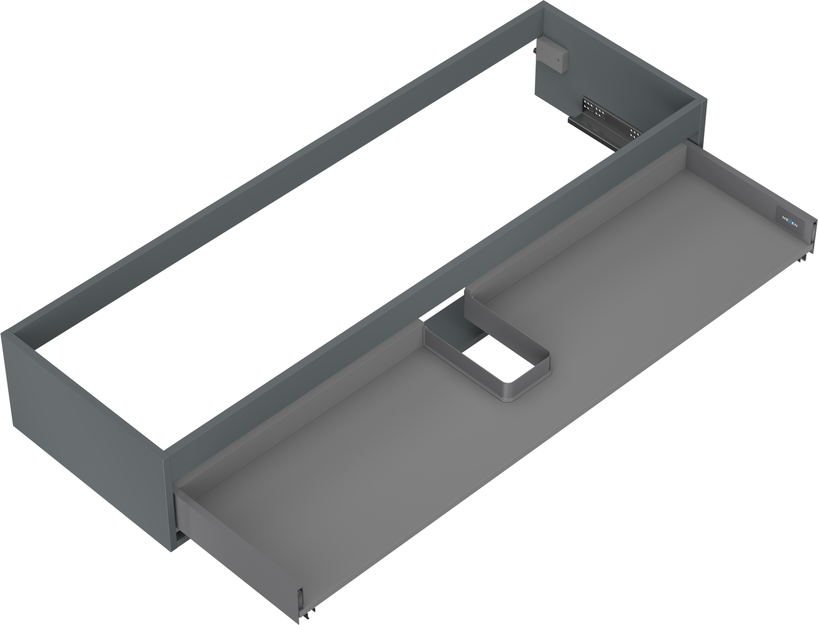La découpe dans le tiroir est conçue de manière à accueillir le siphon, qui est nécessaire dans les installations de lavabo. Ainsi, le meuble peut être installé de manière pleinement fonctionnelle, sans devoir renoncer à l'espace du tiroir au profit de l'installation.
