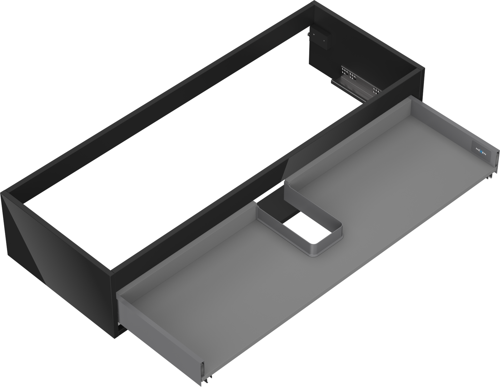 La découpe dans le tiroir est conçue de manière à accueillir le siphon, qui est nécessaire dans les installations de lavabo. Ainsi, le meuble peut être installé de manière pleinement fonctionnelle, sans devoir renoncer à l'espace du tiroir au profit de l'installation.