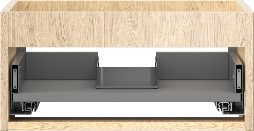 La découpe dans le tiroir est conçue de manière à accueillir le siphon, qui est nécessaire dans les installations de lavabo. Ainsi, le meuble peut être installé de manière pleinement fonctionnelle, sans devoir renoncer à l'espace du tiroir au profit de l'installation.