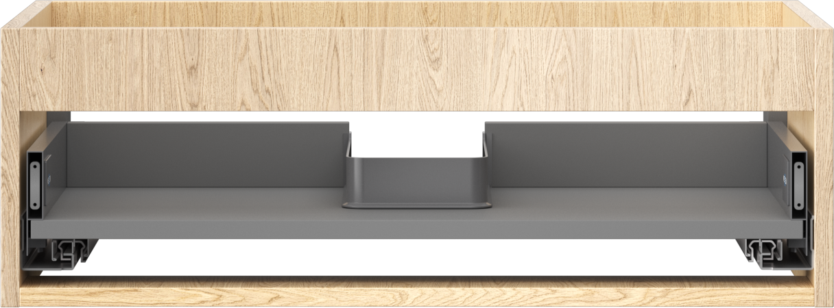 La découpe dans le tiroir est conçue de manière à accueillir le siphon, qui est nécessaire dans les installations de lavabo. Ainsi, le meuble peut être installé de manière pleinement fonctionnelle, sans devoir renoncer à l'espace du tiroir au profit de l'installation.