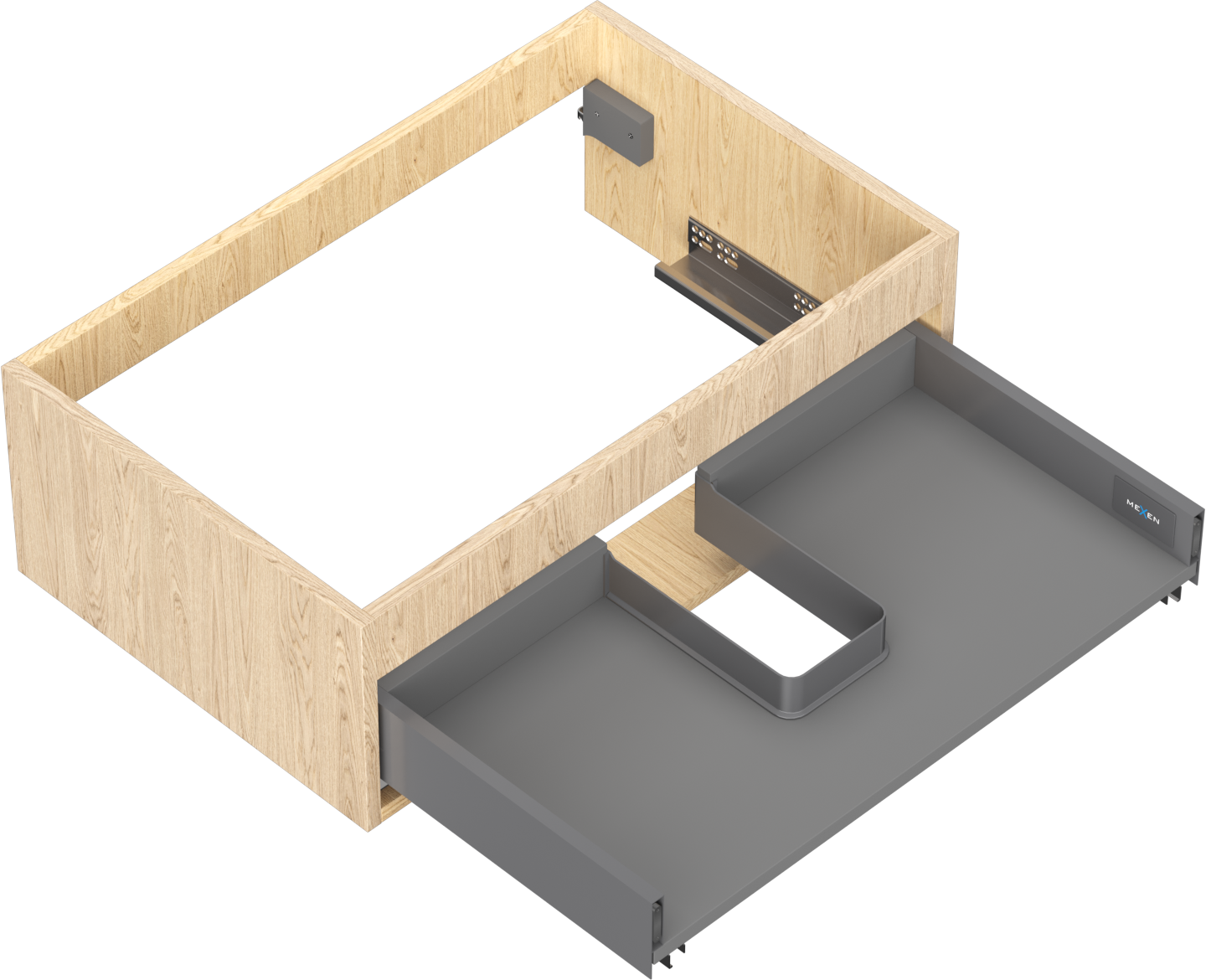 Un tiroir à sortie complète est un type de tiroir équipé d'un mécanisme permettant son extraction totale du corps du meuble. Ce mécanisme facilite l'accès au contenu du tiroir, car il n'est pas nécessaire d'atteindre les bords arrière.
