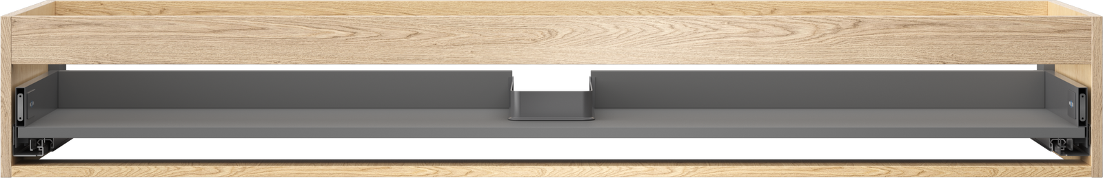 La découpe dans le tiroir est conçue de manière à accueillir le siphon, qui est nécessaire dans les installations de lavabo. Ainsi, le meuble peut être installé de manière pleinement fonctionnelle, sans devoir renoncer à l'espace du tiroir au profit de l'installation.