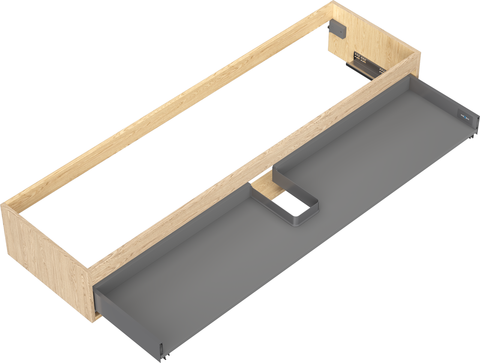 Un tiroir à sortie complète est un type de tiroir équipé d'un mécanisme permettant son extraction totale du corps du meuble. Ce mécanisme facilite l'accès au contenu du tiroir, car il n'est pas nécessaire d'atteindre les bords arrière.