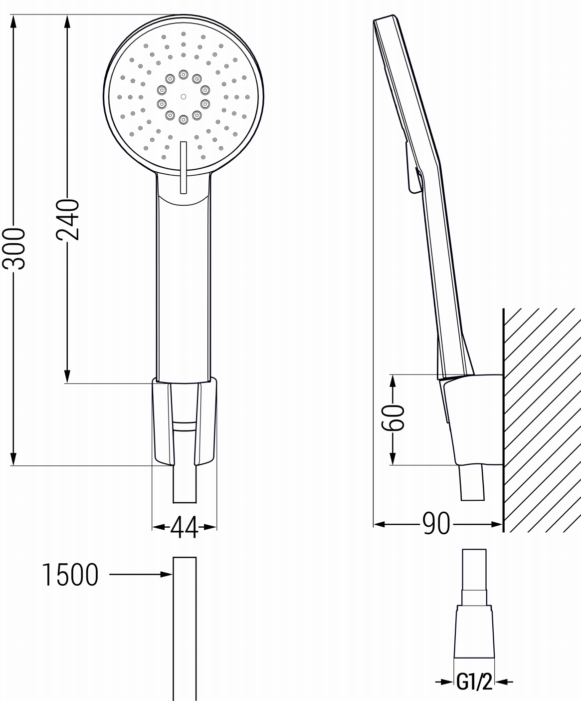 Hauteur de la pomme de douche: 240 mm