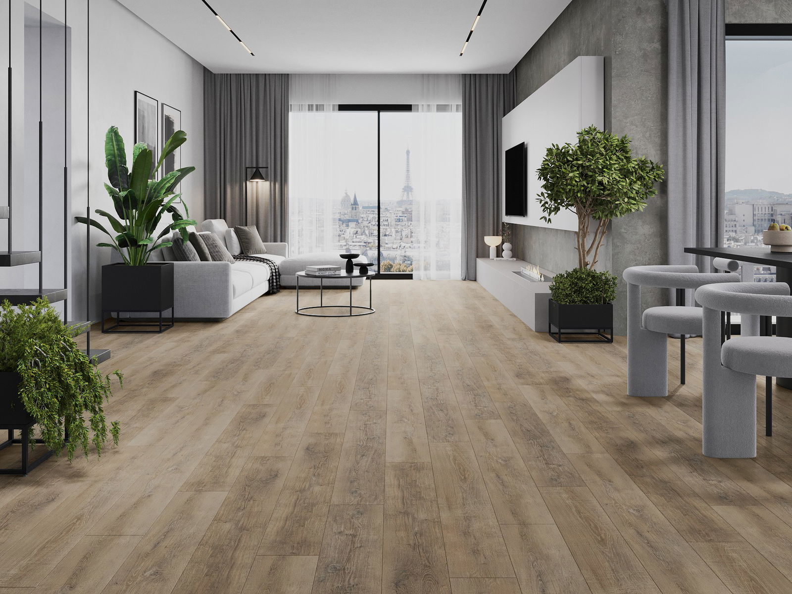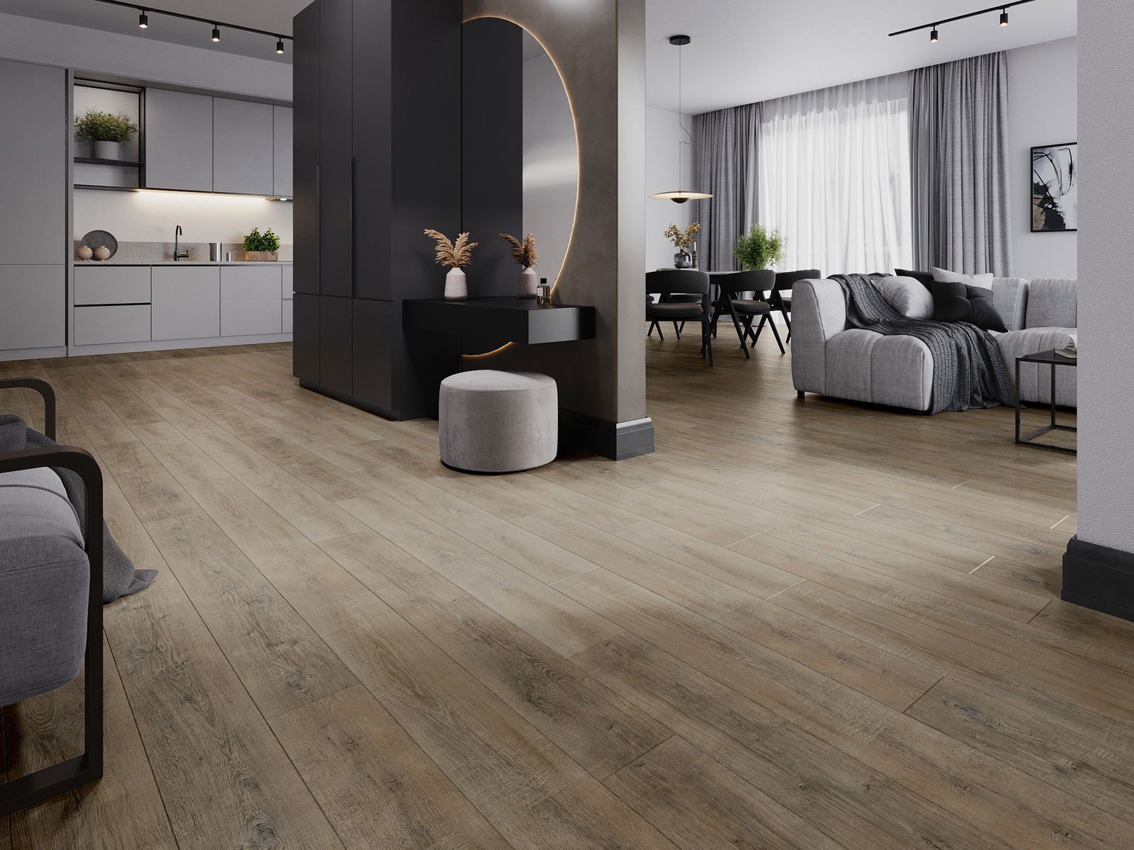 Les panneaux possèdent un joint à 4 côtés - chaque bord a été fraisé de telle manière que, une fois posé, il forme une connexion en forme de V. Ce design confère au sol une structure plus prononcée, lui donnant de la profondeur et un caractère esthétique. Cet effet est particulièrement apprécié dans les aménagements modernes, où les détails soulignent l'aspect unique de l'intérieur.