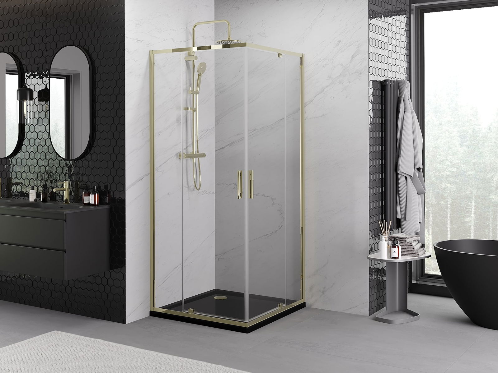 Mexen Exo cabine de douche carrée pivotante 70 x 70 cm, transparente, dorée - 8110-070-070-50-00