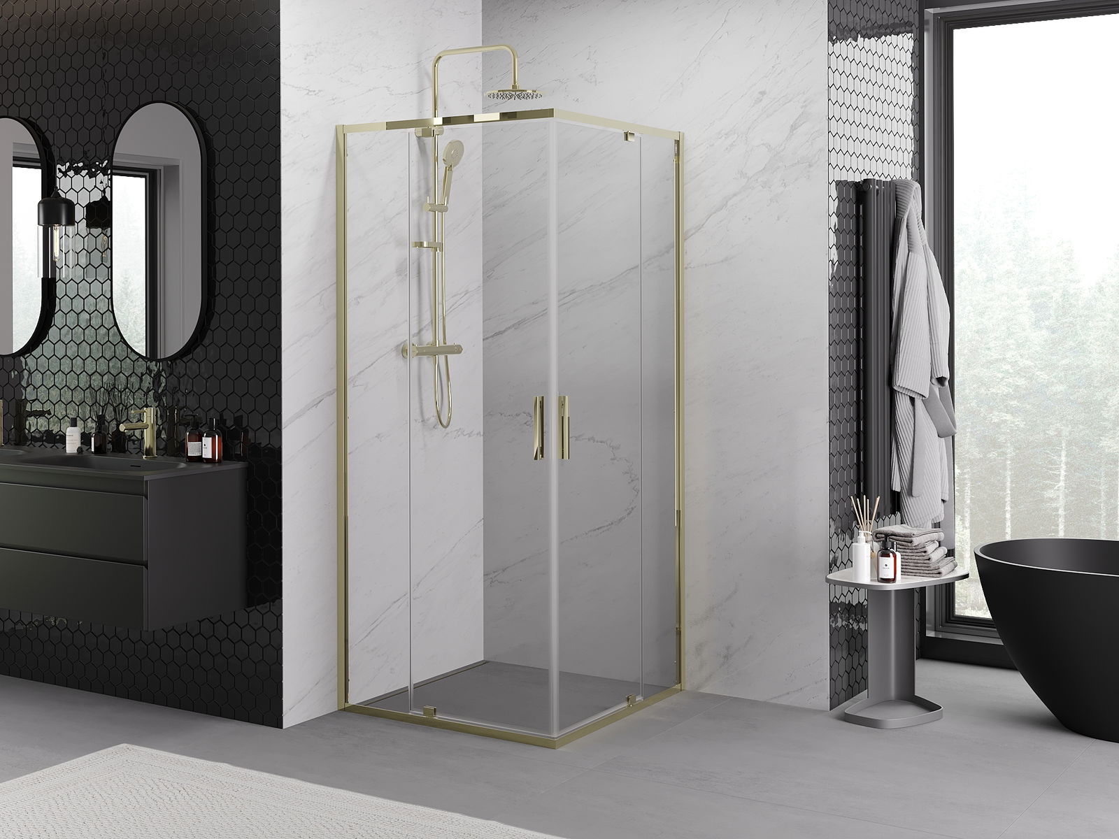 La poignée pratique et confortable est fabriquée en métal durable et résistant. Sa forme à la mode, combinée à une finition assortie à la couleur des profilés, donne à l'ensemble un aspect moderne et stylé, soulignant l'esthétique de chaque salle de bain.