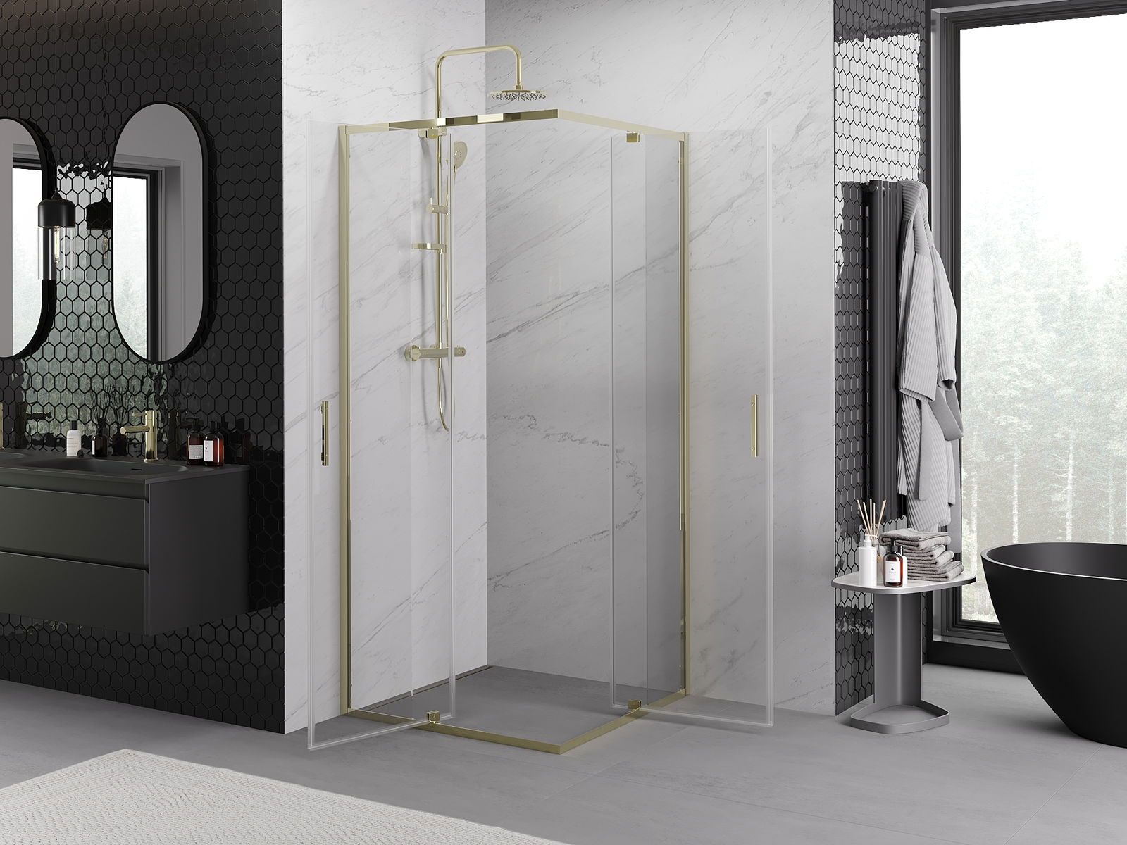 Les portes battantes permettent une liberté maximale lors de l'utilisation. Elles sont équipées de charnières solides fabriquées à partir d'un matériau durable, qui ne posent aucun problème de nettoyage et permettent un accès facile à l'intérieur de la cabine.