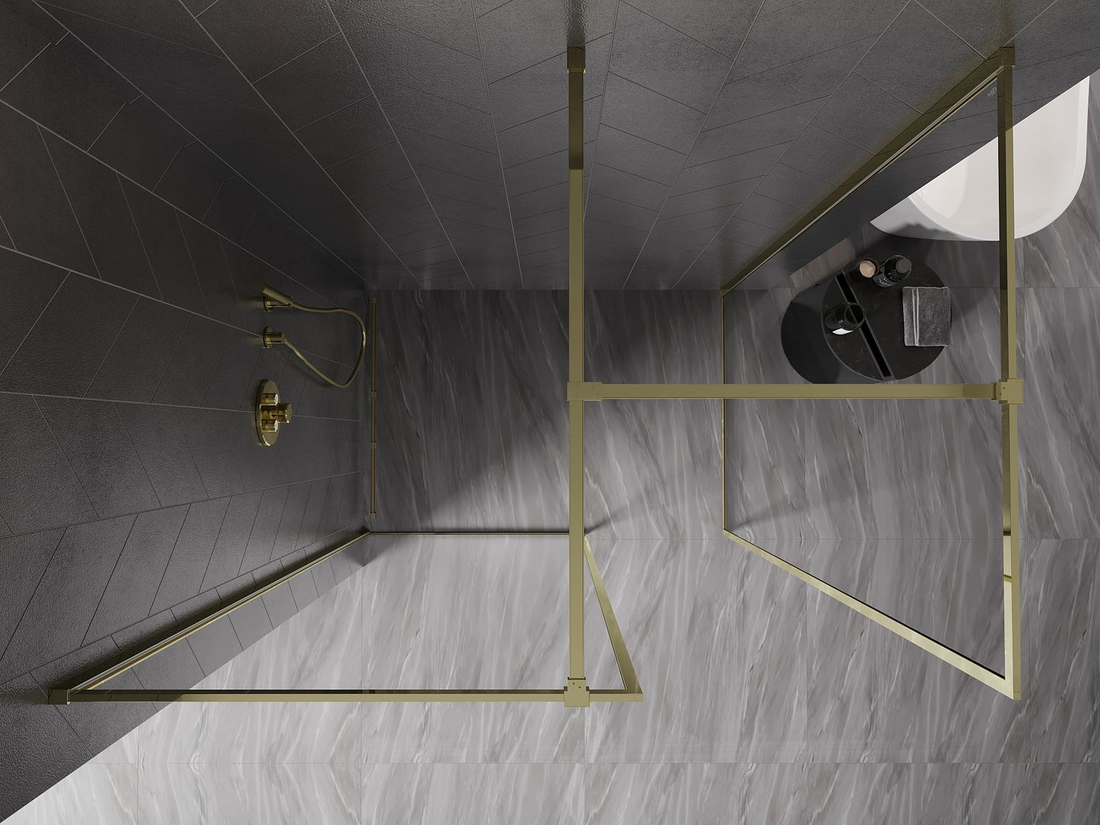 Mexen Kioto-F paroi de douche Walk-in avec cadre 130 x 95 cm, transparent 8 mm, or - 800-130-202-04-50-095