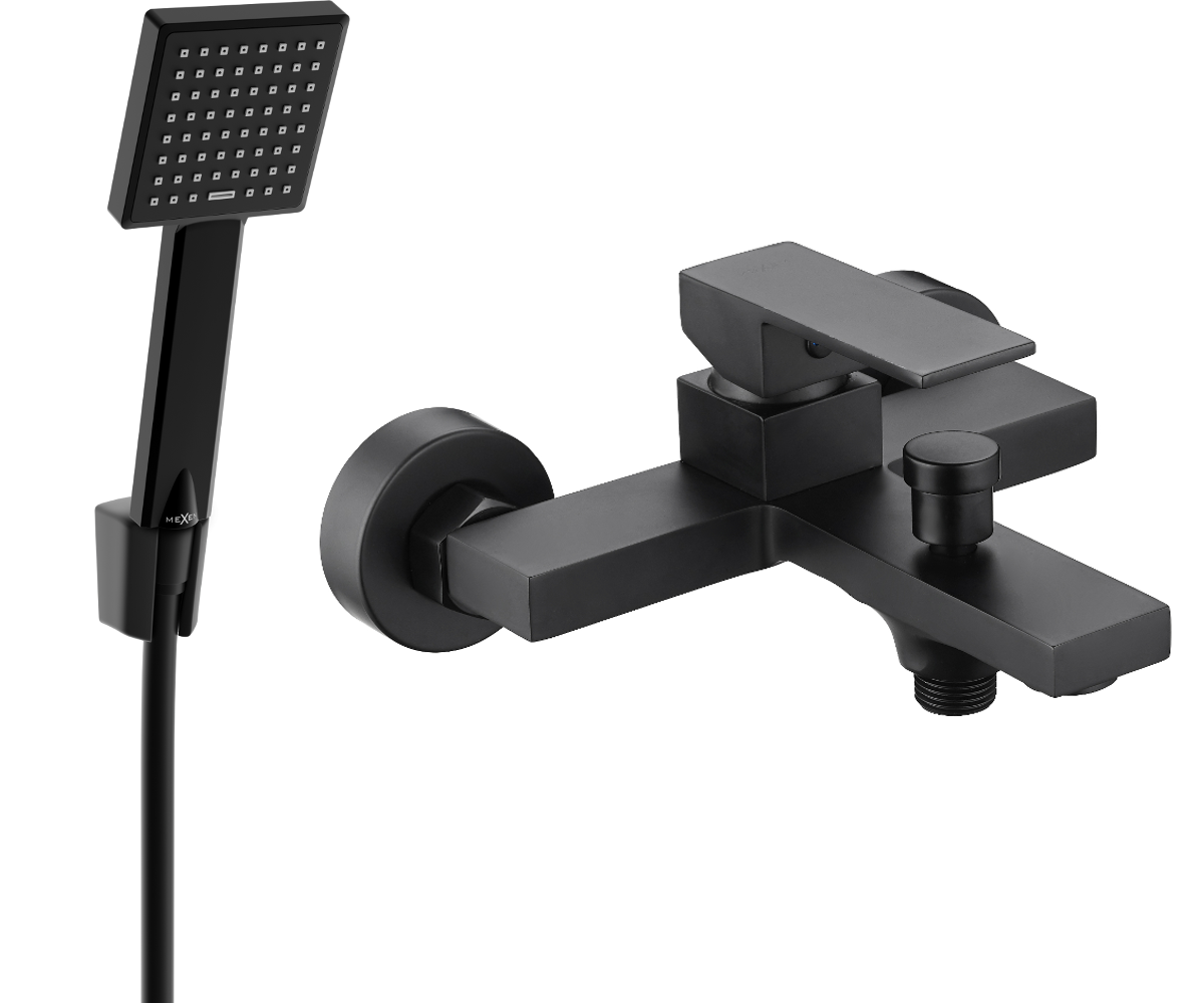 Mexen Uno R45 batterie de bain avec ensemble de douche, noire - 7143R45-70