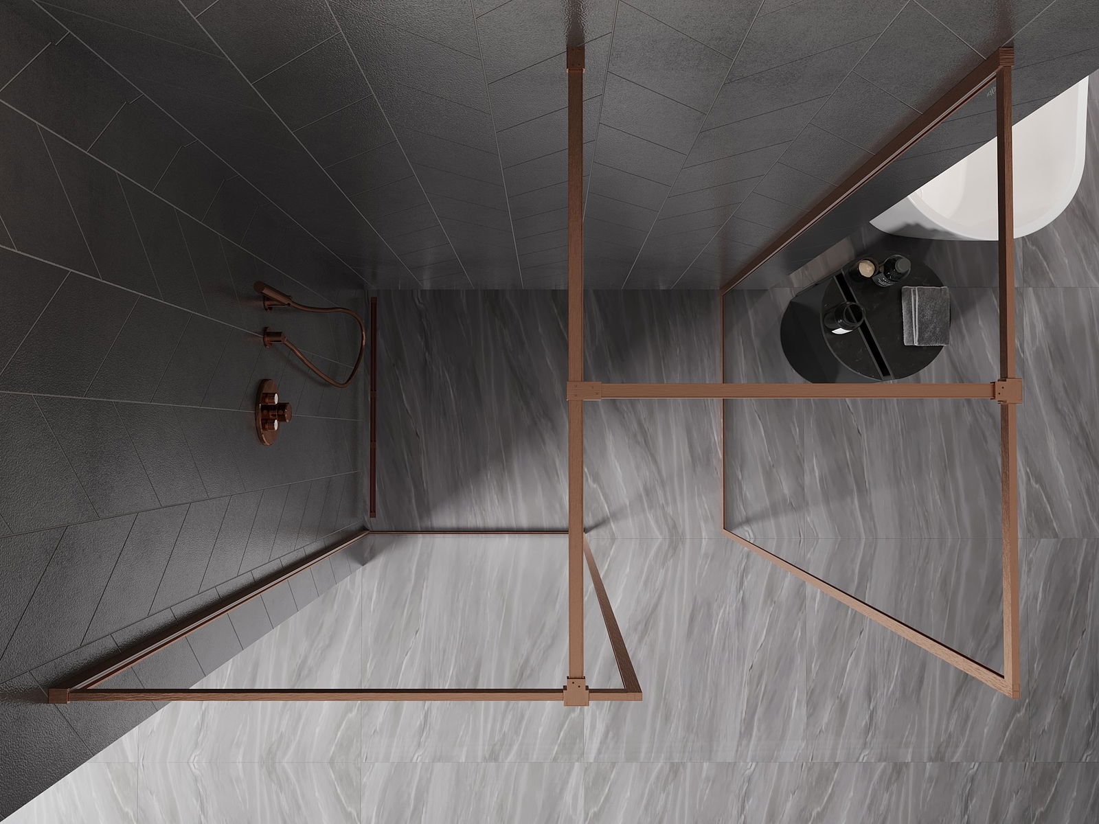 Mexen Kioto-F Paroi de douche Walk-in avec cadre 115 x 100 cm, transparent 8 mm, cuivre brossé - 800-115-202-04-65-100