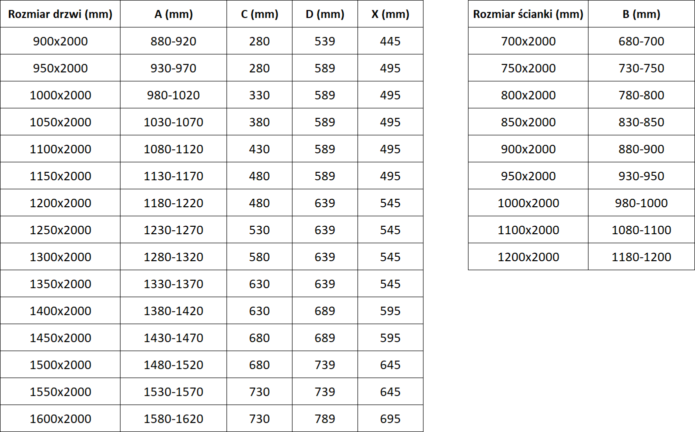 Taille : 155x85 cm (porte 155 cm, paroi 85 cm)