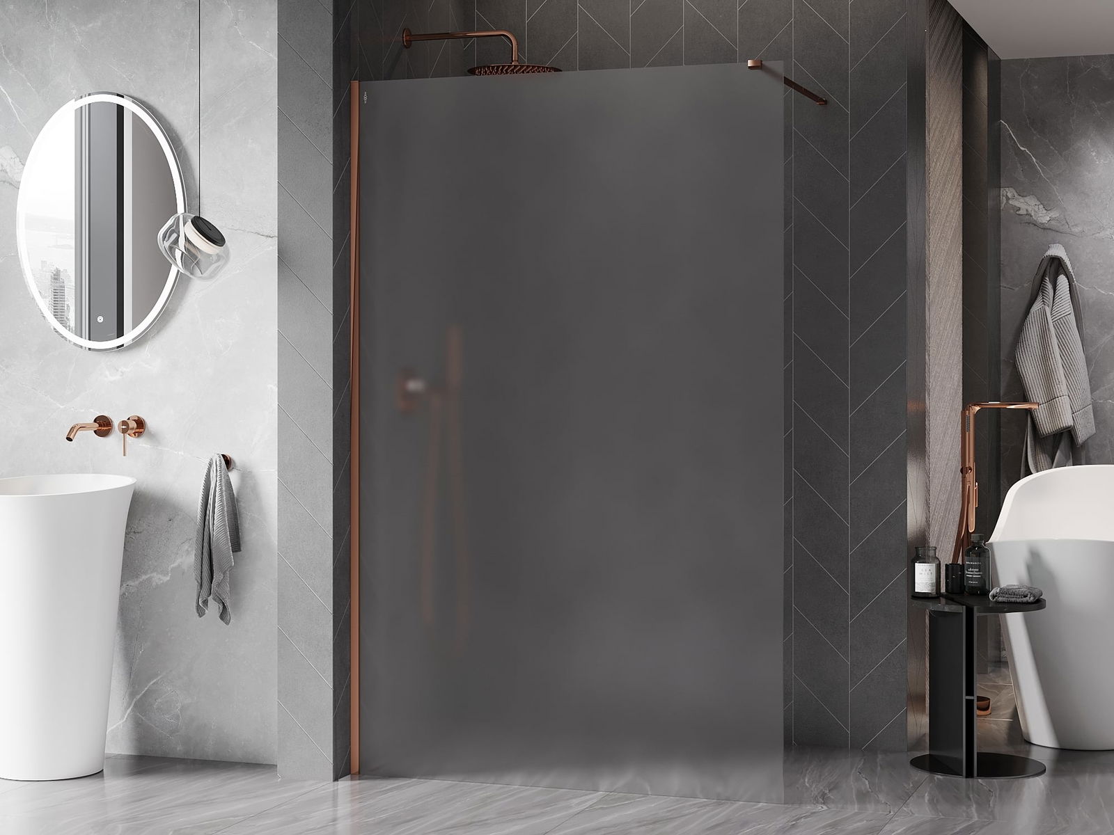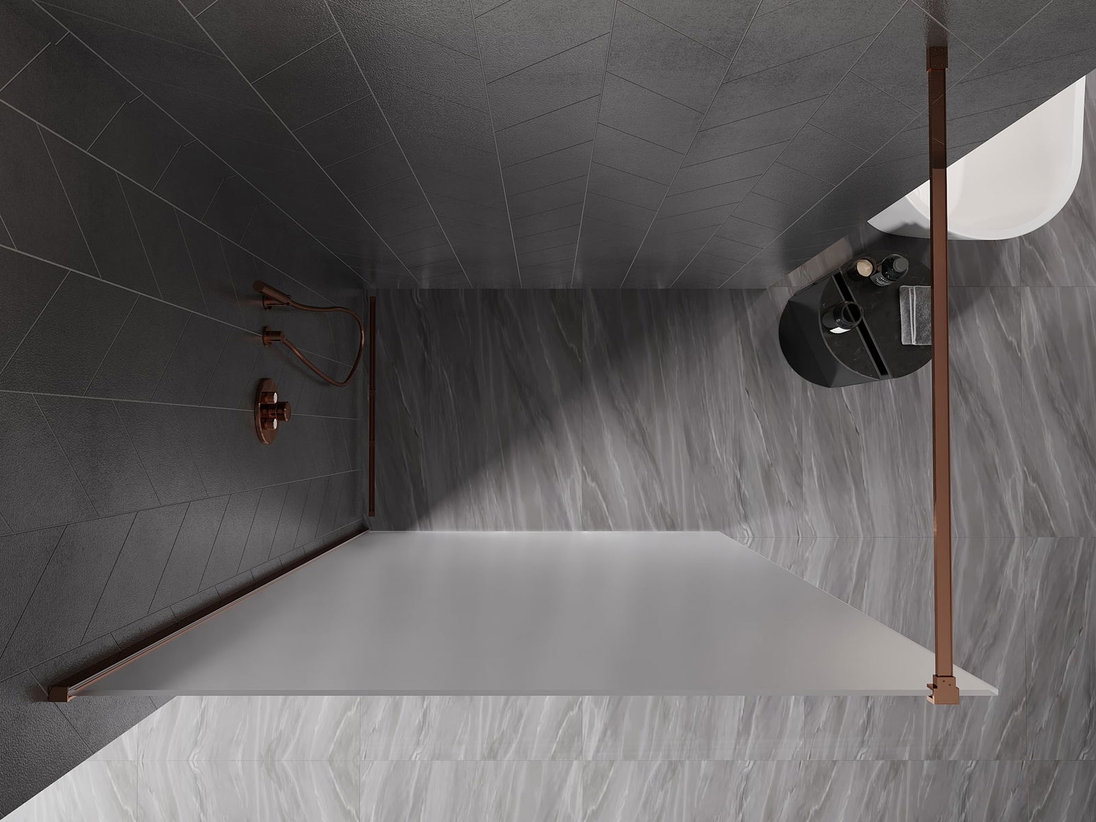 Mexen Kioto-X paroi de douche Walk-in 90 x 200 cm, givre 10 mm, or rose - 800-090-101-60-30-X