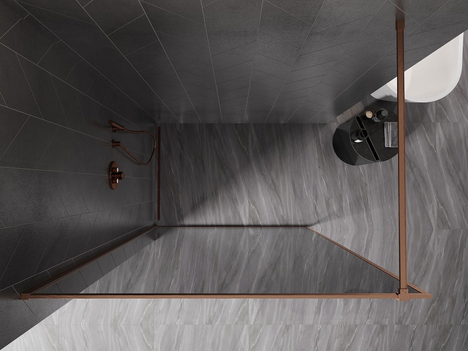 Mexen Kioto-XF paroi de douche Walk-in avec cadre 50 x 202 cm, graphite 10 mm, cuivre brossé - 800-050-104-65-40-X