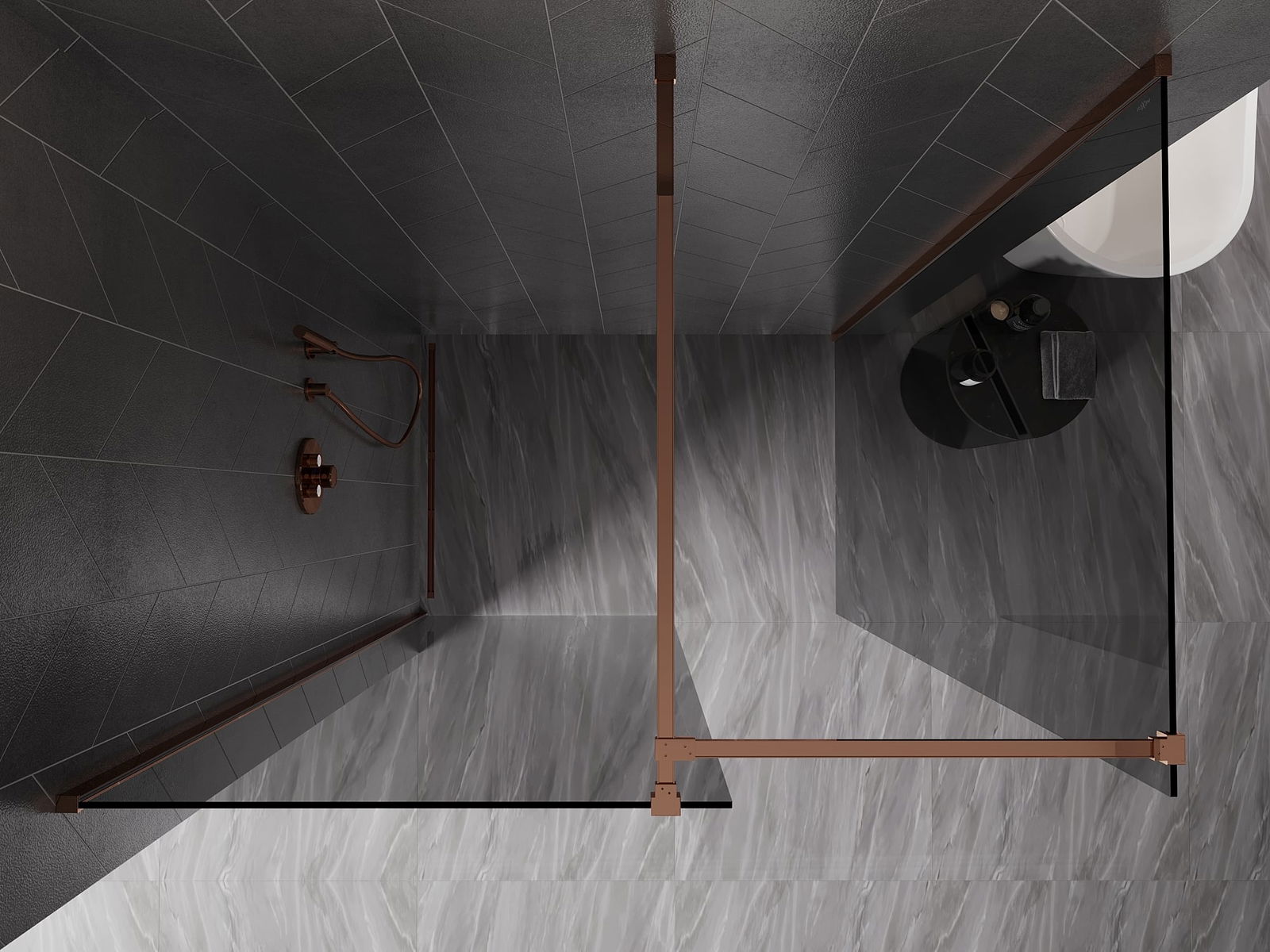 Mexen Kioto-X paroi de douche Walk-in 70 x 70 cm, transparent 10 mm, or rose - 800-070-202-60-00-070-X