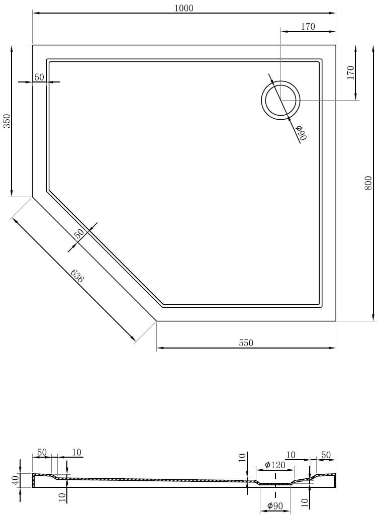 Mexen Flow receveur pentagonal slim droit 100 x 80 cm, blanc brillant - 46P108010R