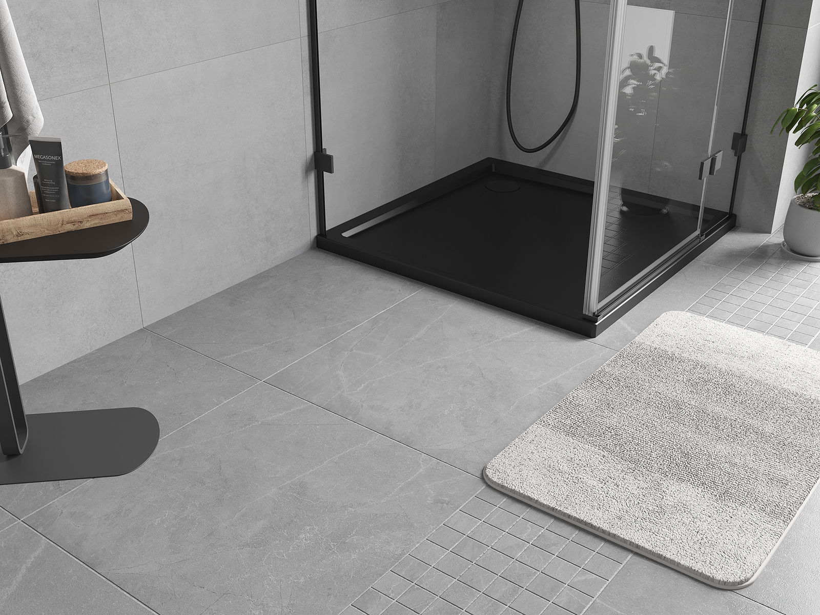 Le receveur de douche a un seuil bas, ce qui facilite l'entrée et la sortie de la douche. Il ajoute une finition exceptionnelle et intemporelle à la pièce, rendant la salle de bain un lieu de détente quotidien confortable et esthétique.