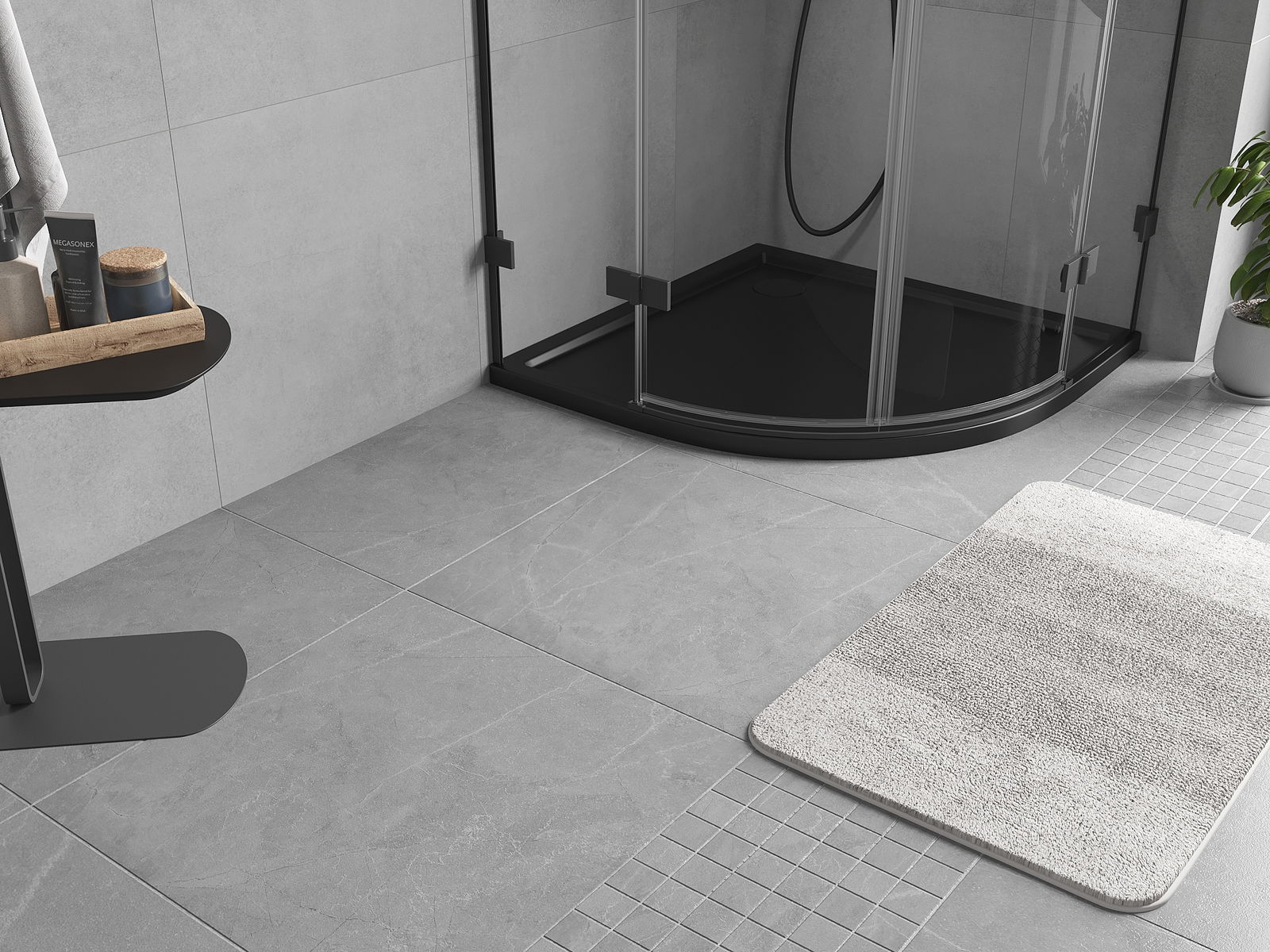 Le receveur de douche a un seuil bas, ce qui facilite l'entrée et la sortie de la douche. Il ajoute une finition exceptionnelle et intemporelle à la pièce, rendant la salle de bain un lieu de détente quotidien confortable et esthétique.