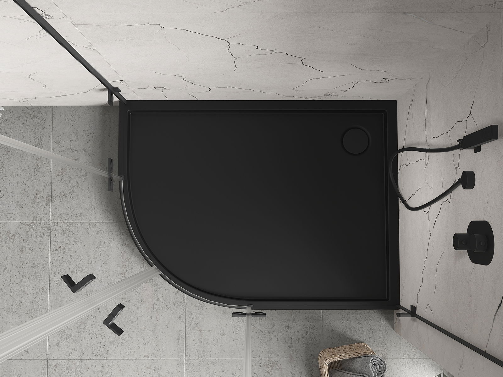 Mexen Flow+ receveur de douche demi-circulaire asymétrique droit 90 x 80 cm, noir mat - 46Q708090RH