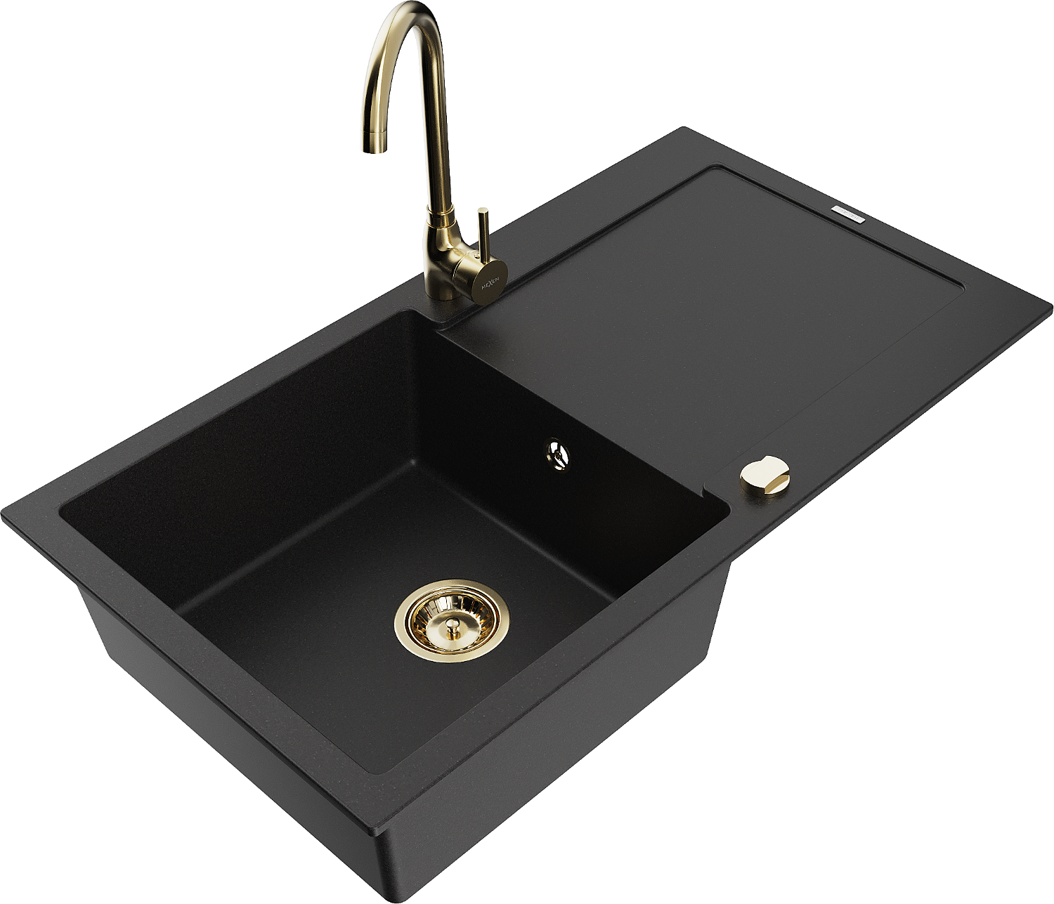 Mexen Leo évier en granit 1 bac avec égouttoir et robinet de cuisine Telma, noir - 6501-77-670200-50