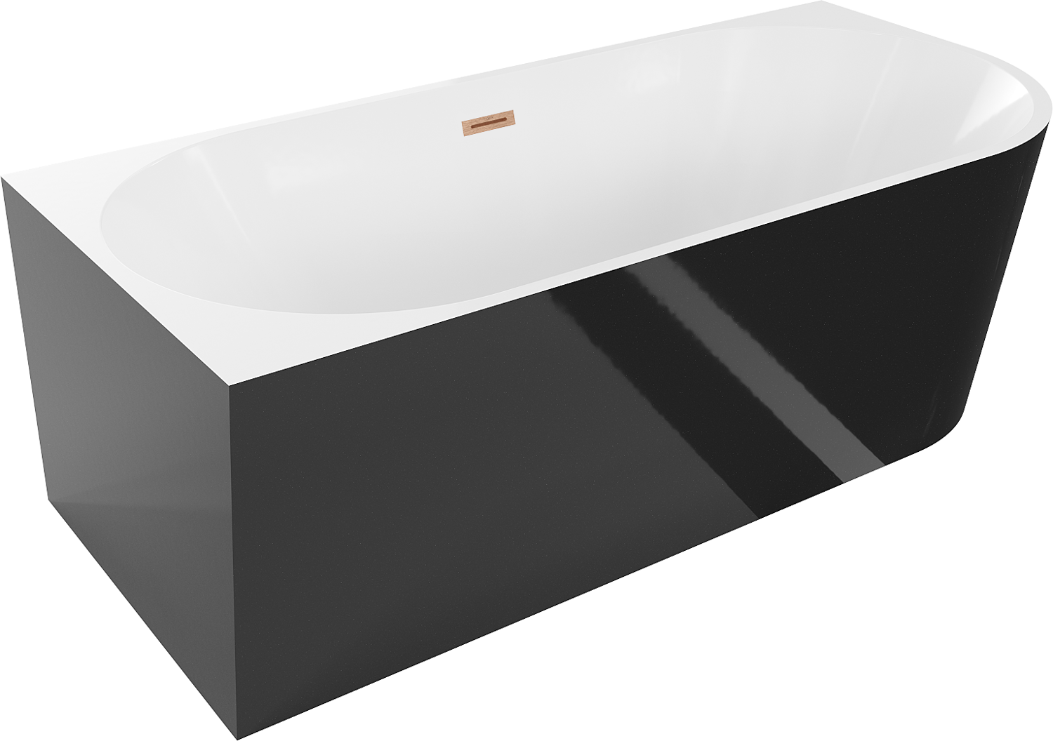 Mexen Mia baignoire autoportante d'angle gauche 160 x 80 cm, blanc/noir, trop-plein cuivre brossé - 52691608075L-65